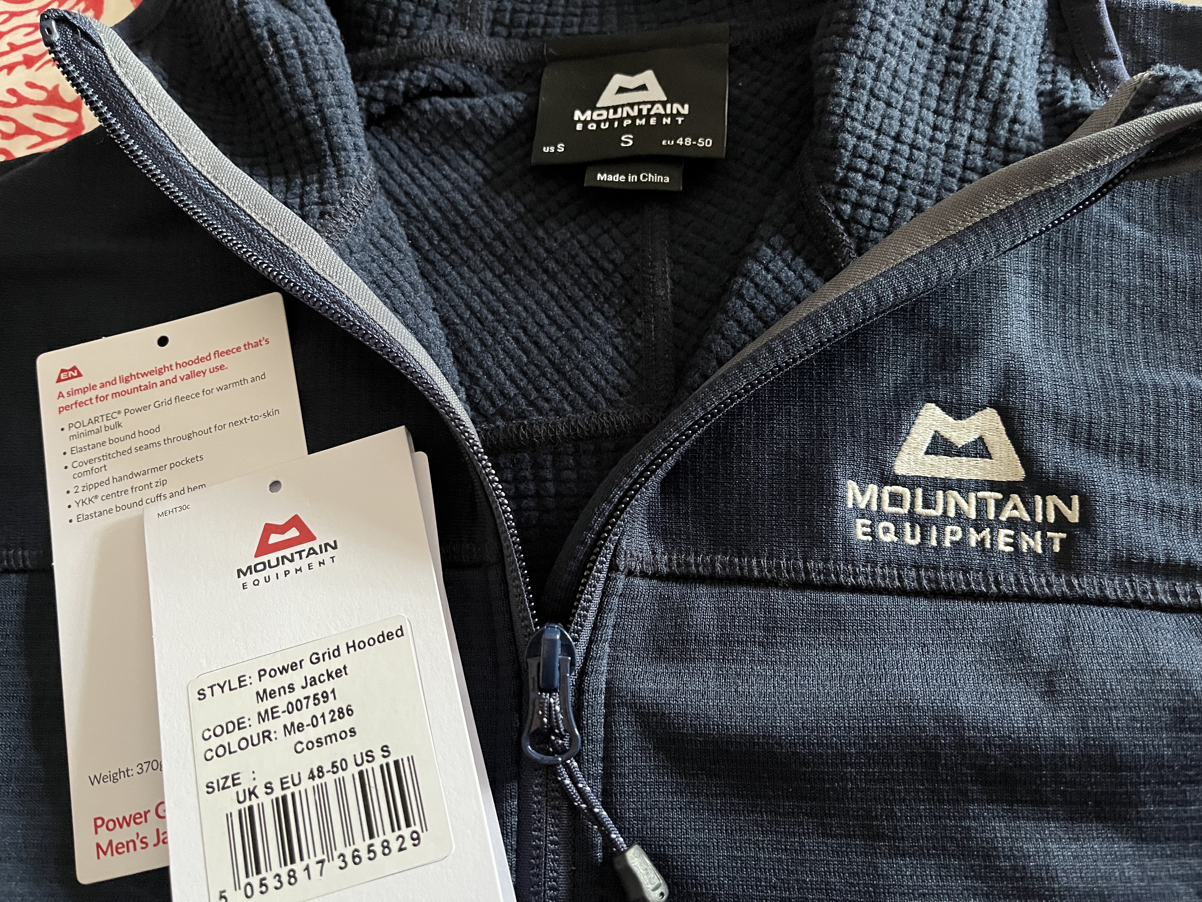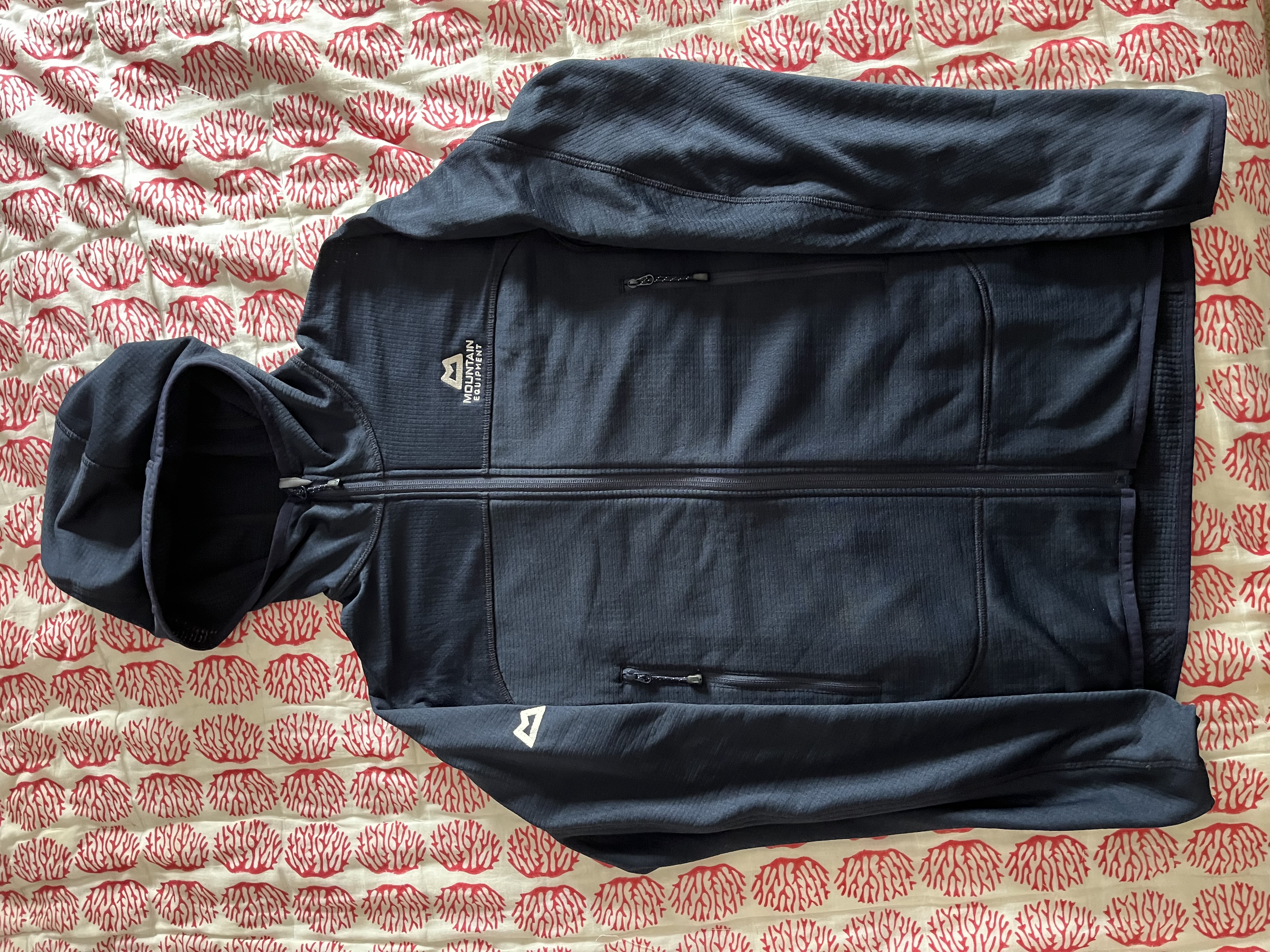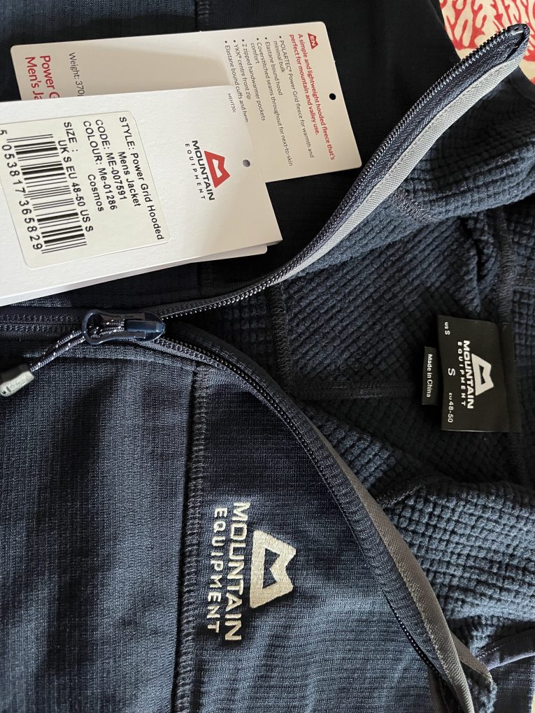 Brand new Mountain Equipment Power Grid hooded fleece jacket.  Size small in cosmos blue.