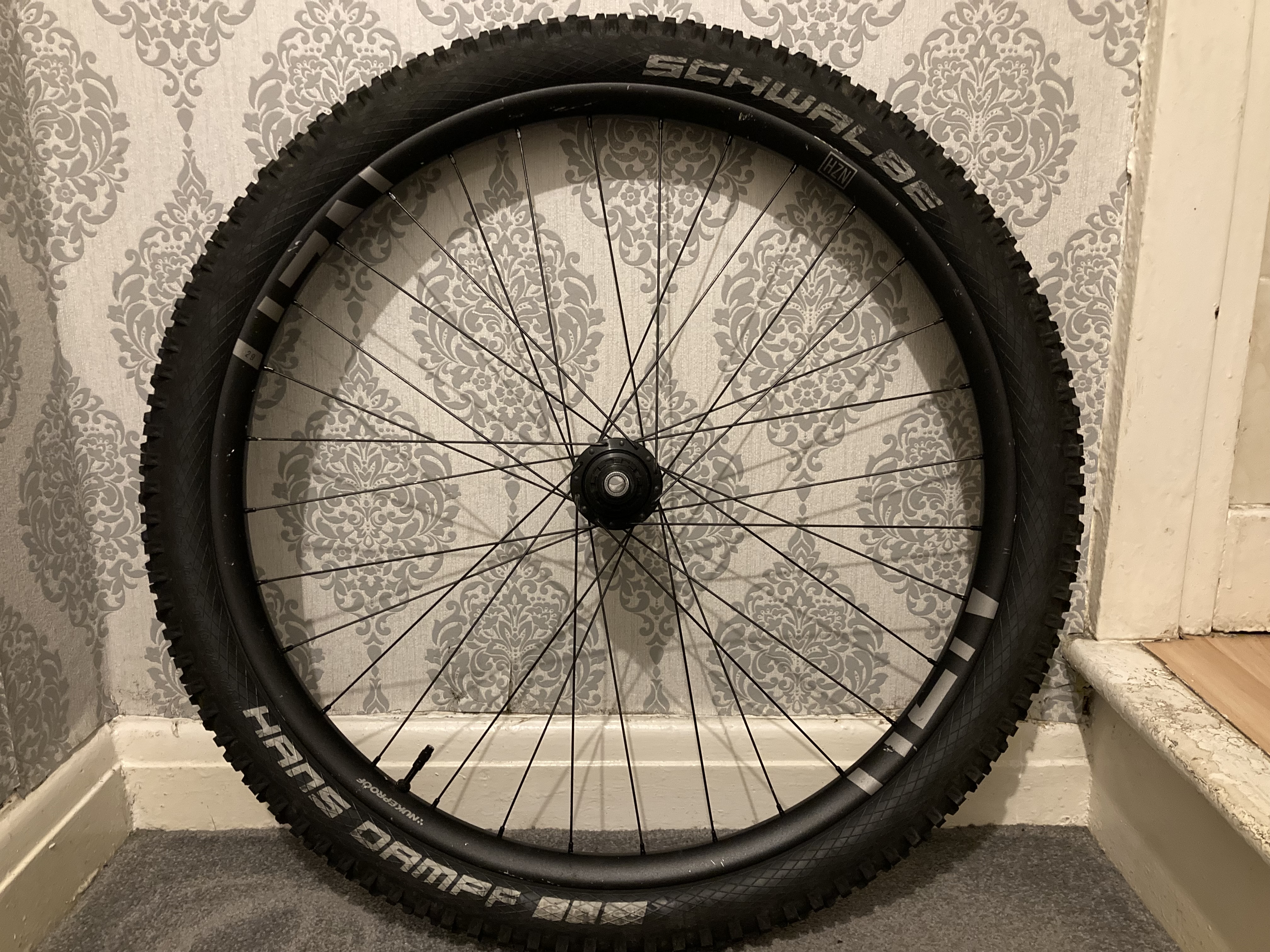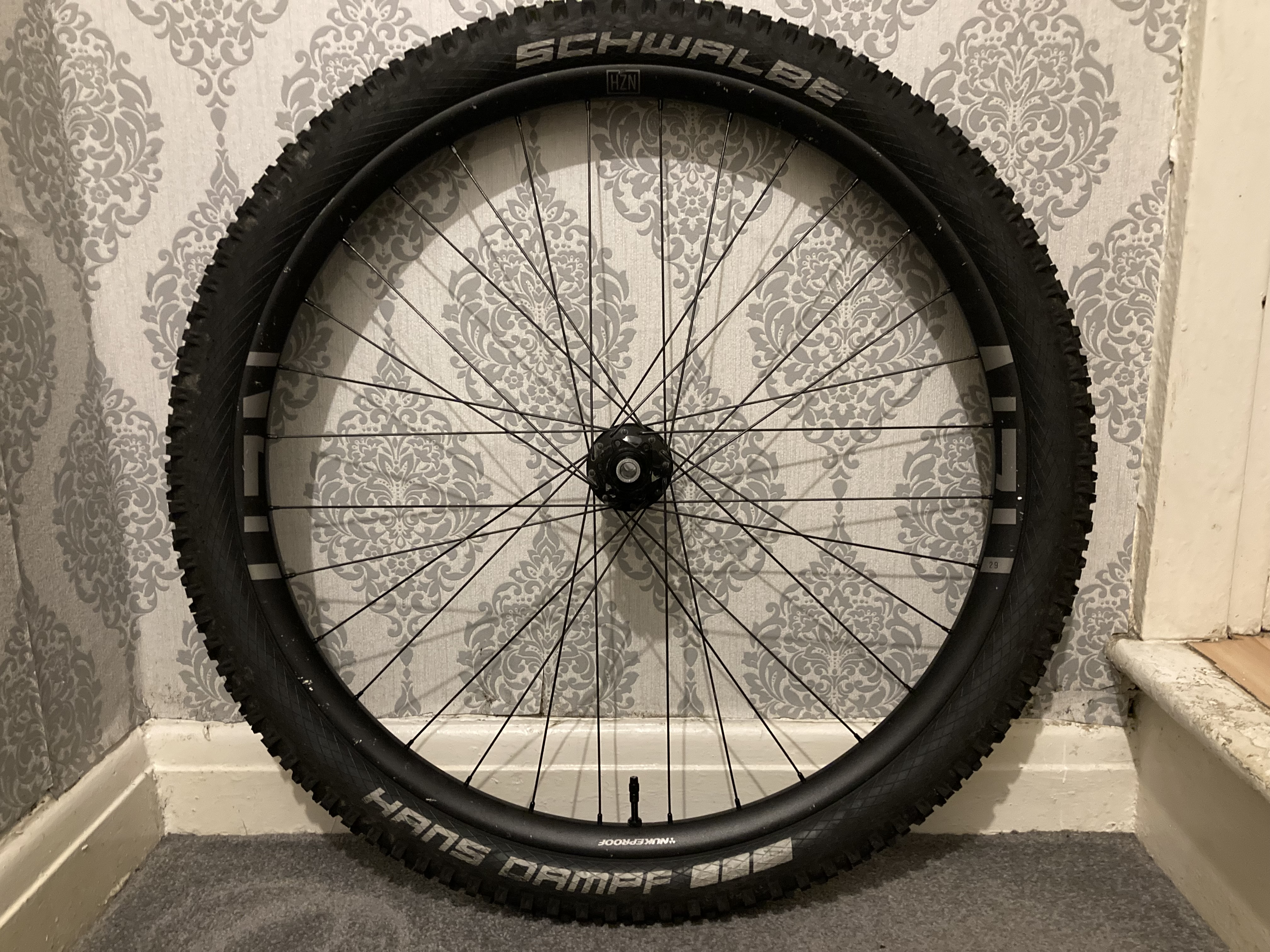 For sale Nukeproof horizon V2 boost rear wheel. £150. The wheel is in good condition with the usual minor scuffs as seen in the pictures. Comes with SRAM XD driver. I will include the Hans Dampf tyre that is set up tubeless for free. The tyre is in good condition and has minimal wear.Â