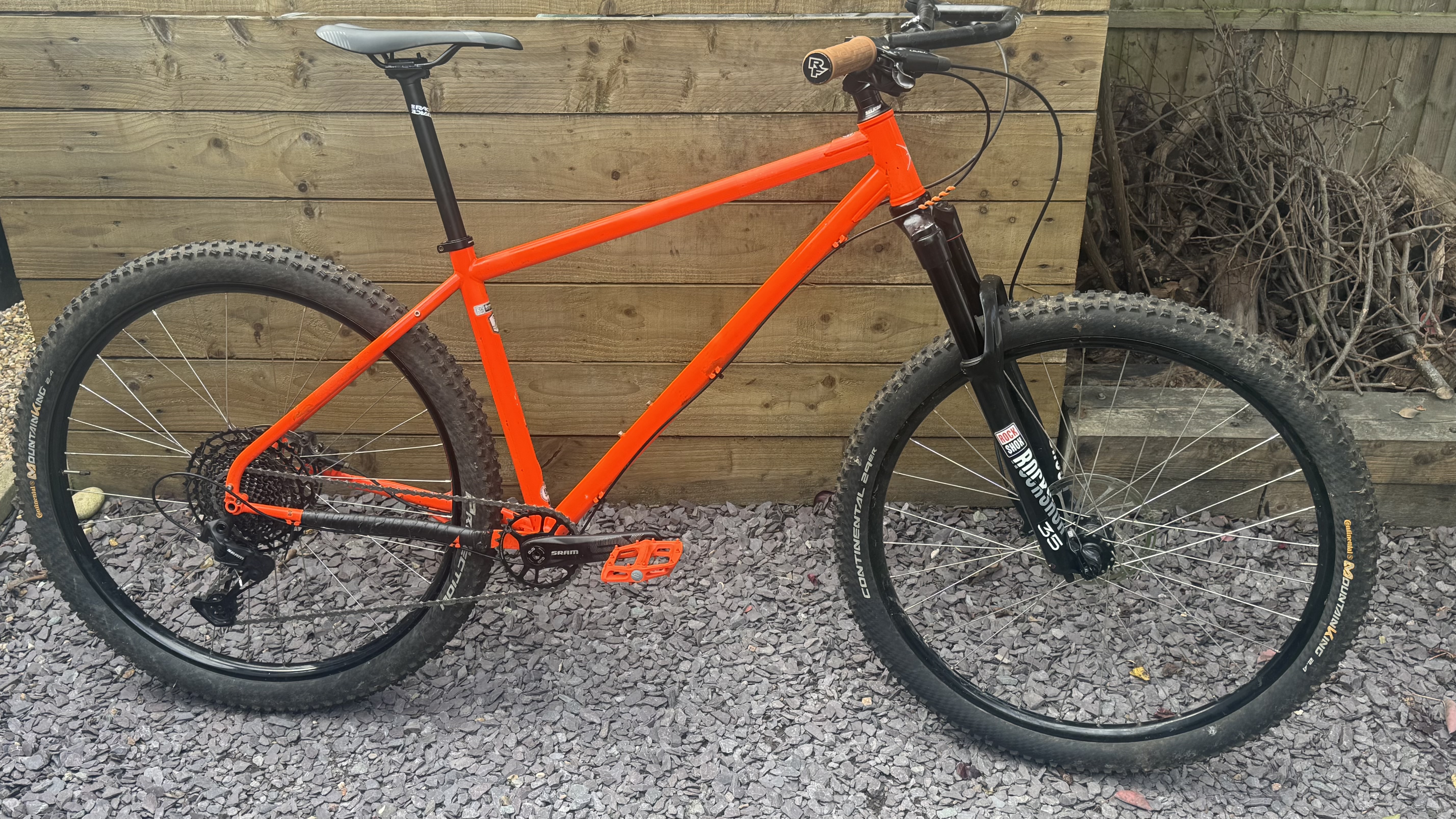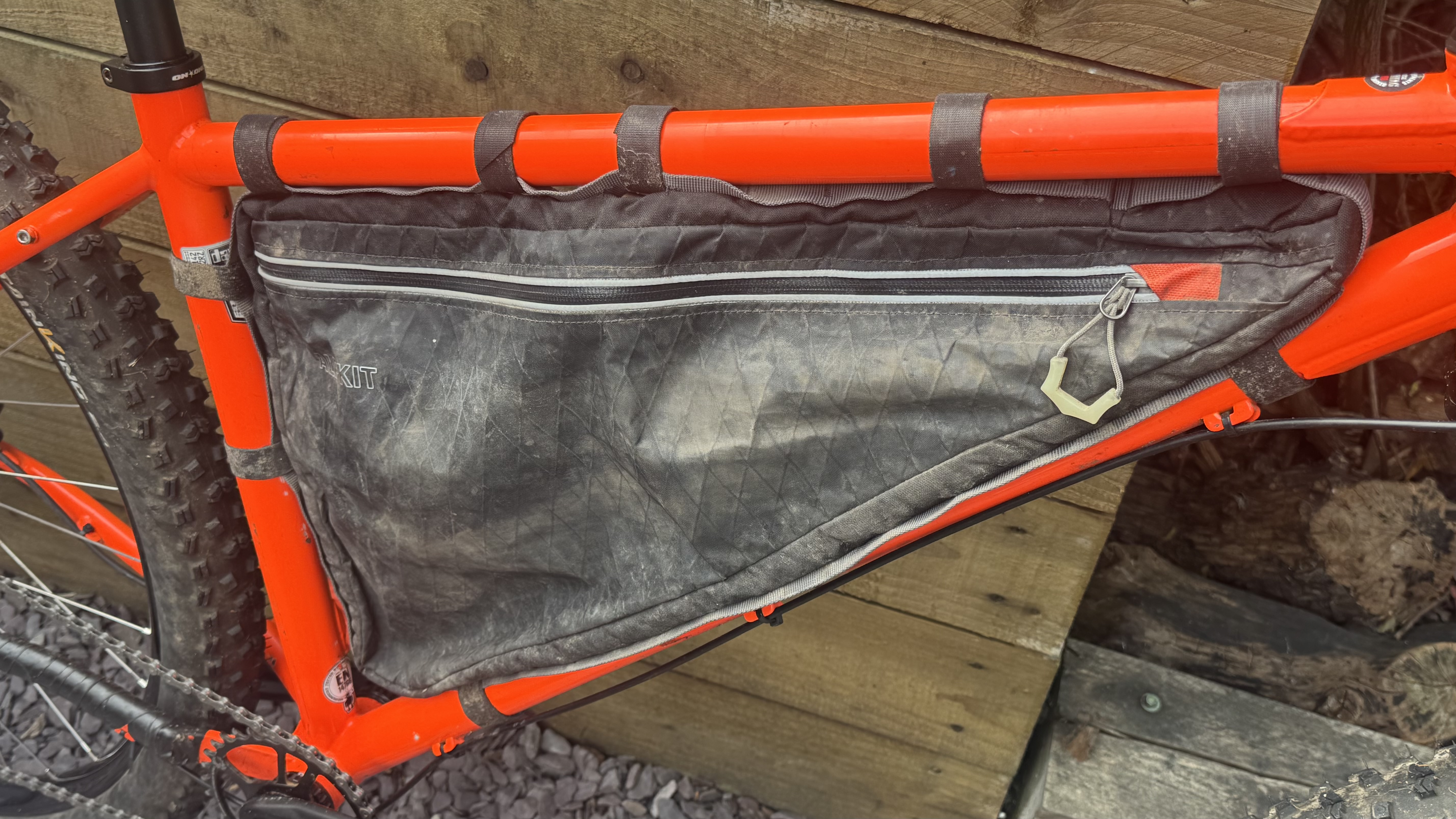 Frame is well used, with dings and scrapes commensurate with its age and use as a bike packing workhorse.Â