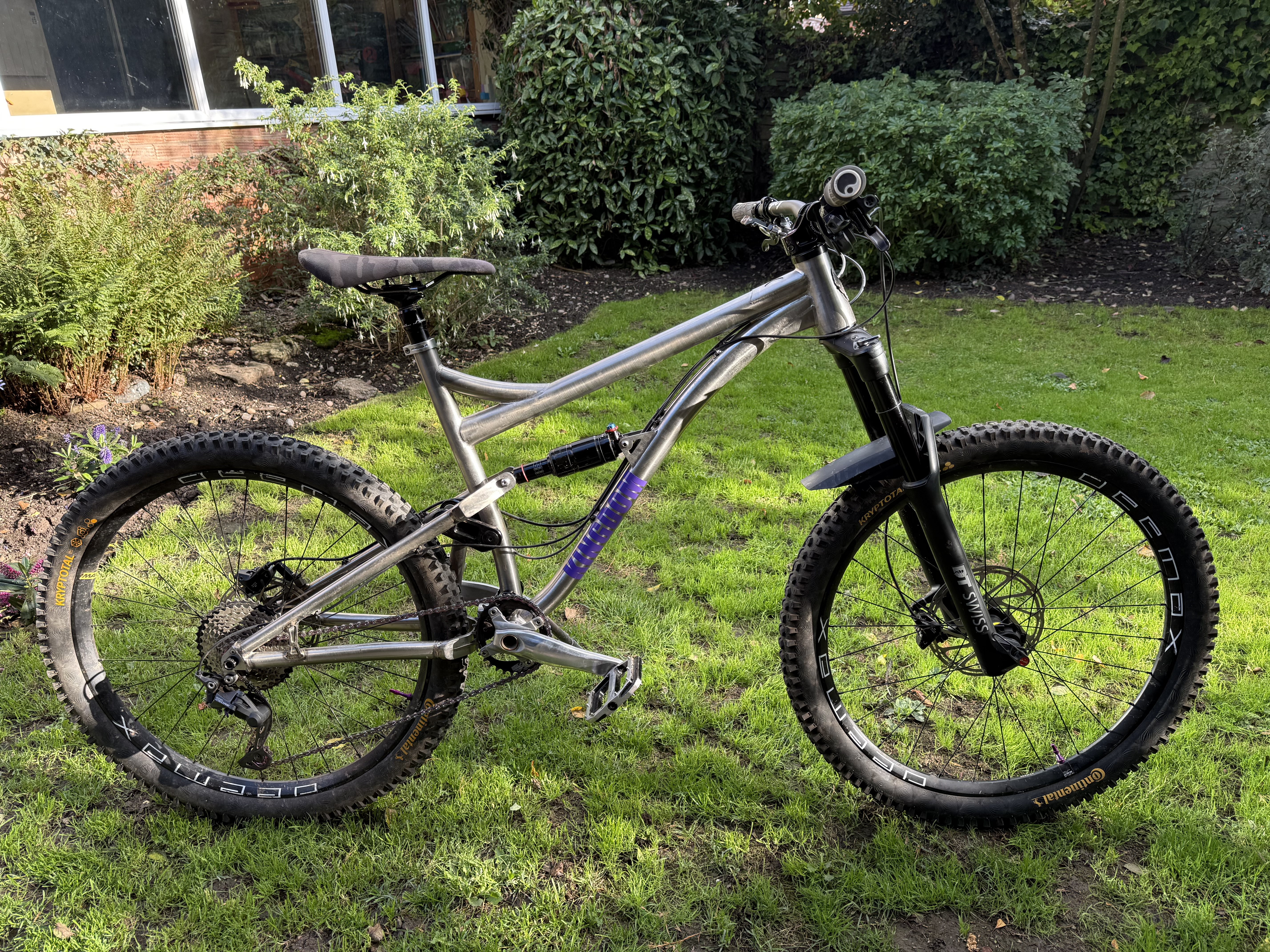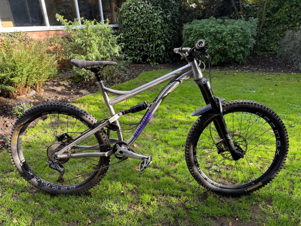 Great working order. 170/160mm travel is lots of fun and it still climbs well. It’s Ti and absolutely gorgeous. Just too short for me sadly. Bearings all good. Rebuilt with new spacers and pivot bolts.