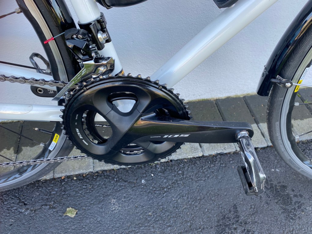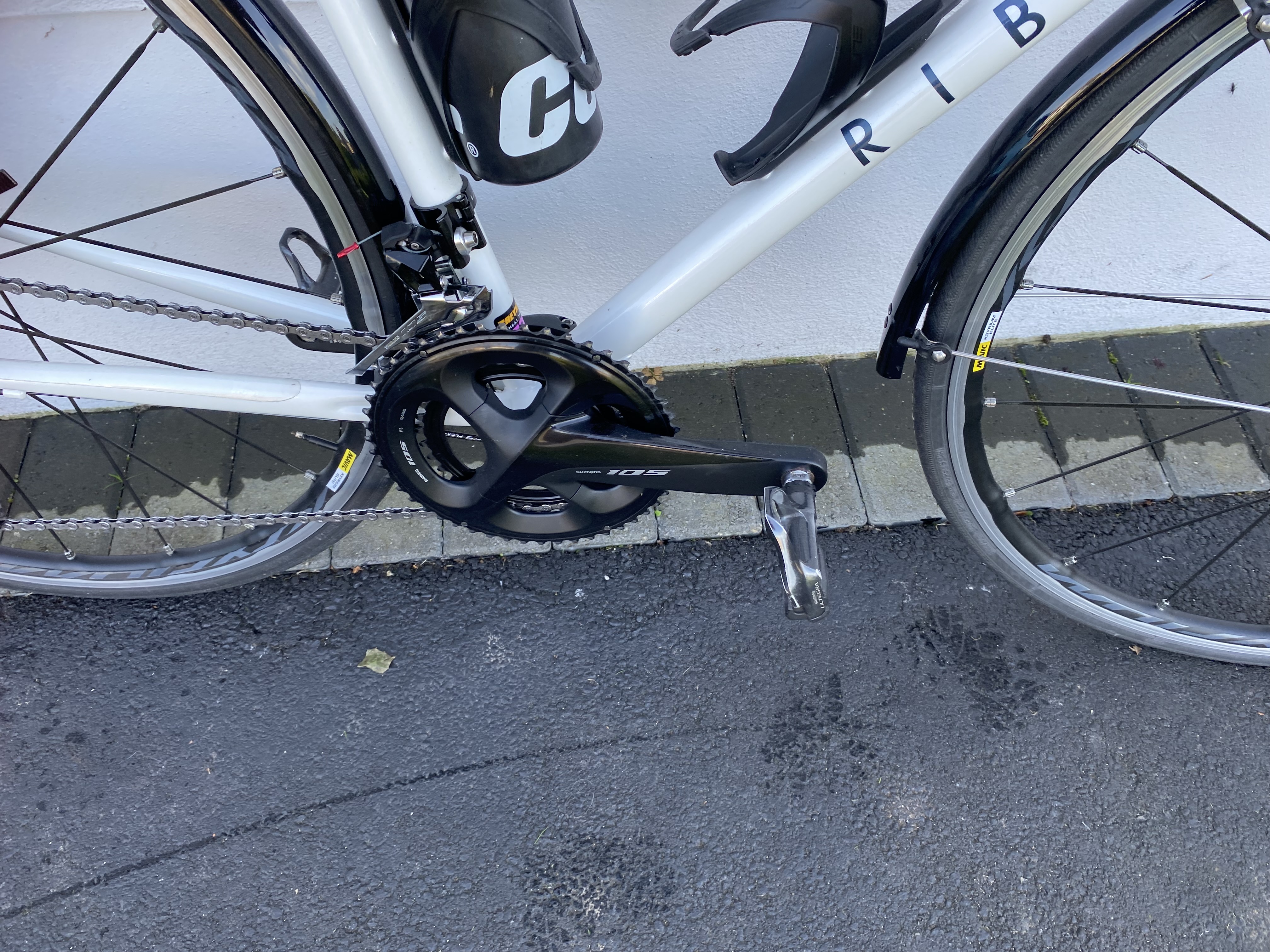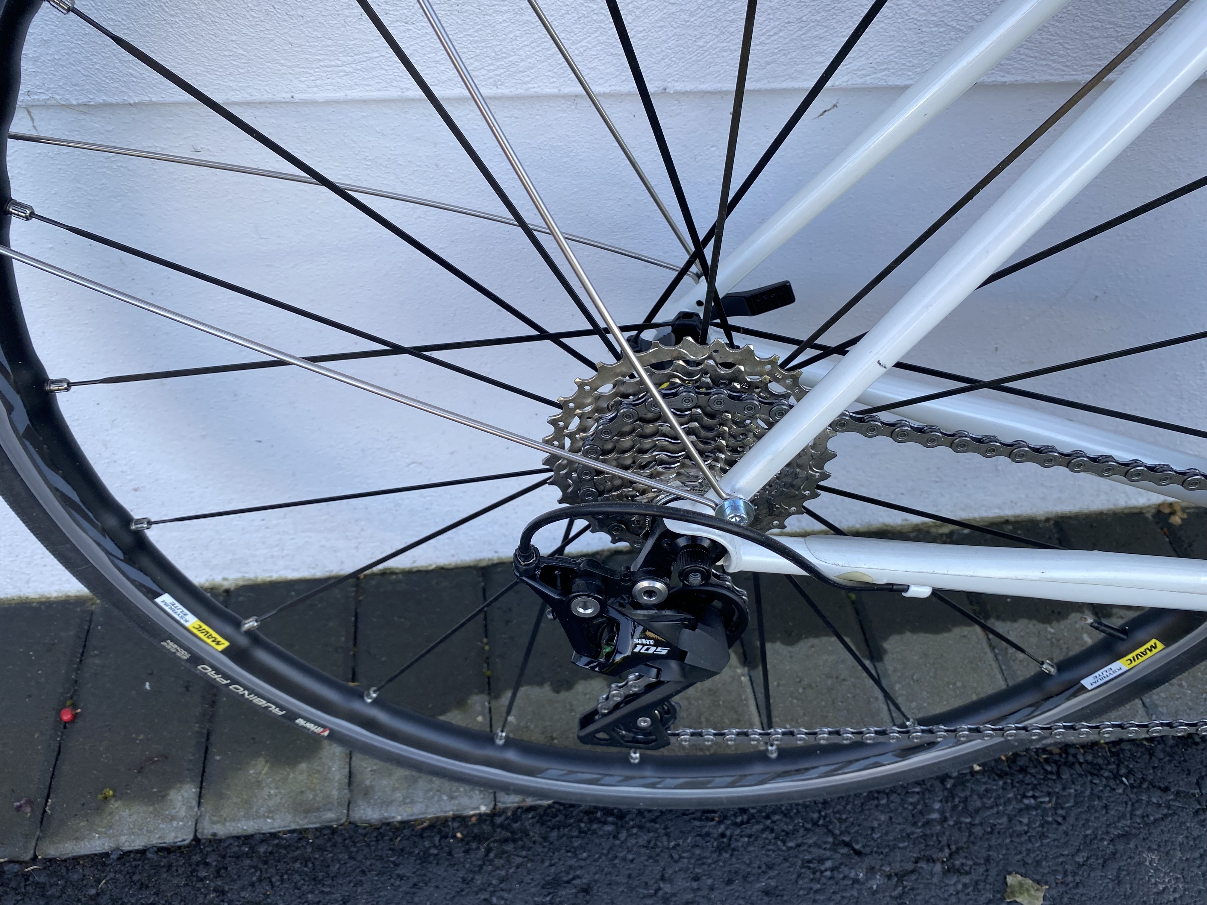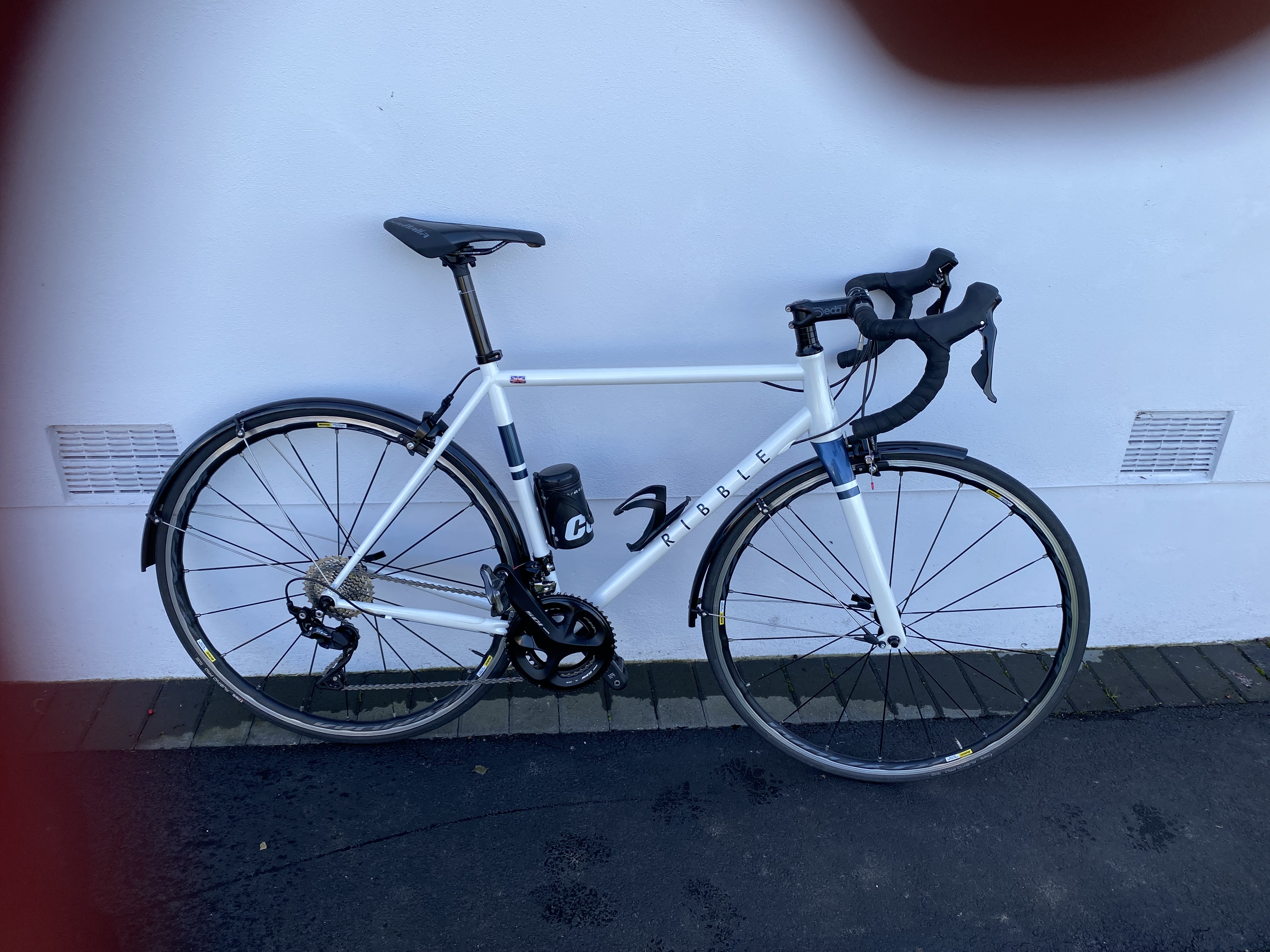 Selling my Ribble Endurance steel 725 road bike in medium. This was bought from Ribble outlet new. It is in pearl white with full carbon fork brand new Shimano 105 R7000 compact groupset – 34-50 172.5 cranks 11-32 cassette medium cage rear mech front mech callipers shifters, chain  and external hollow tech BB.