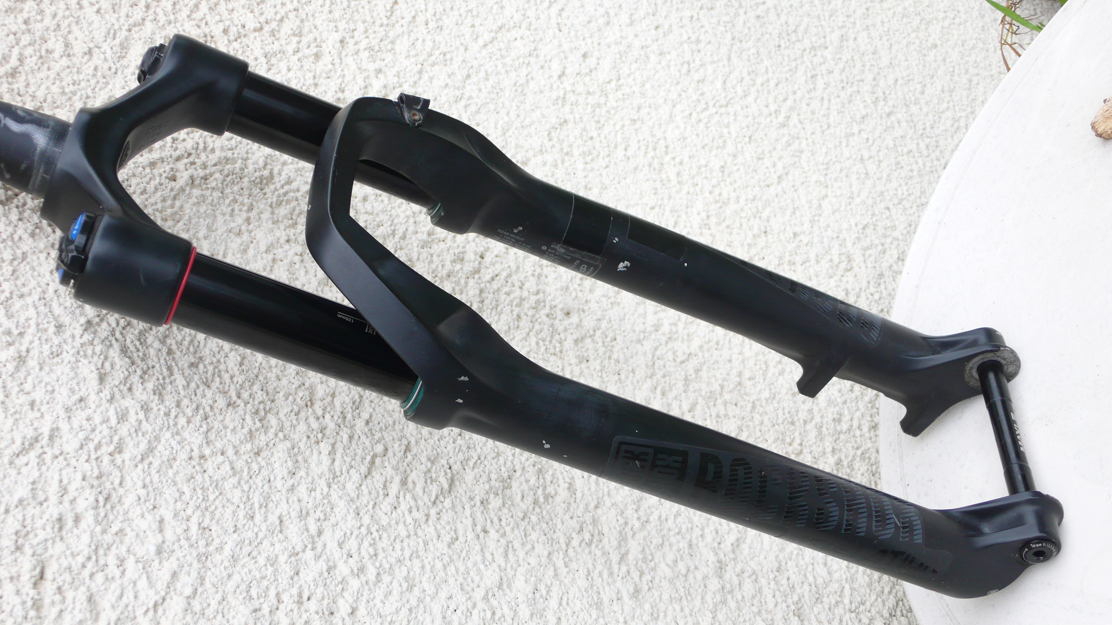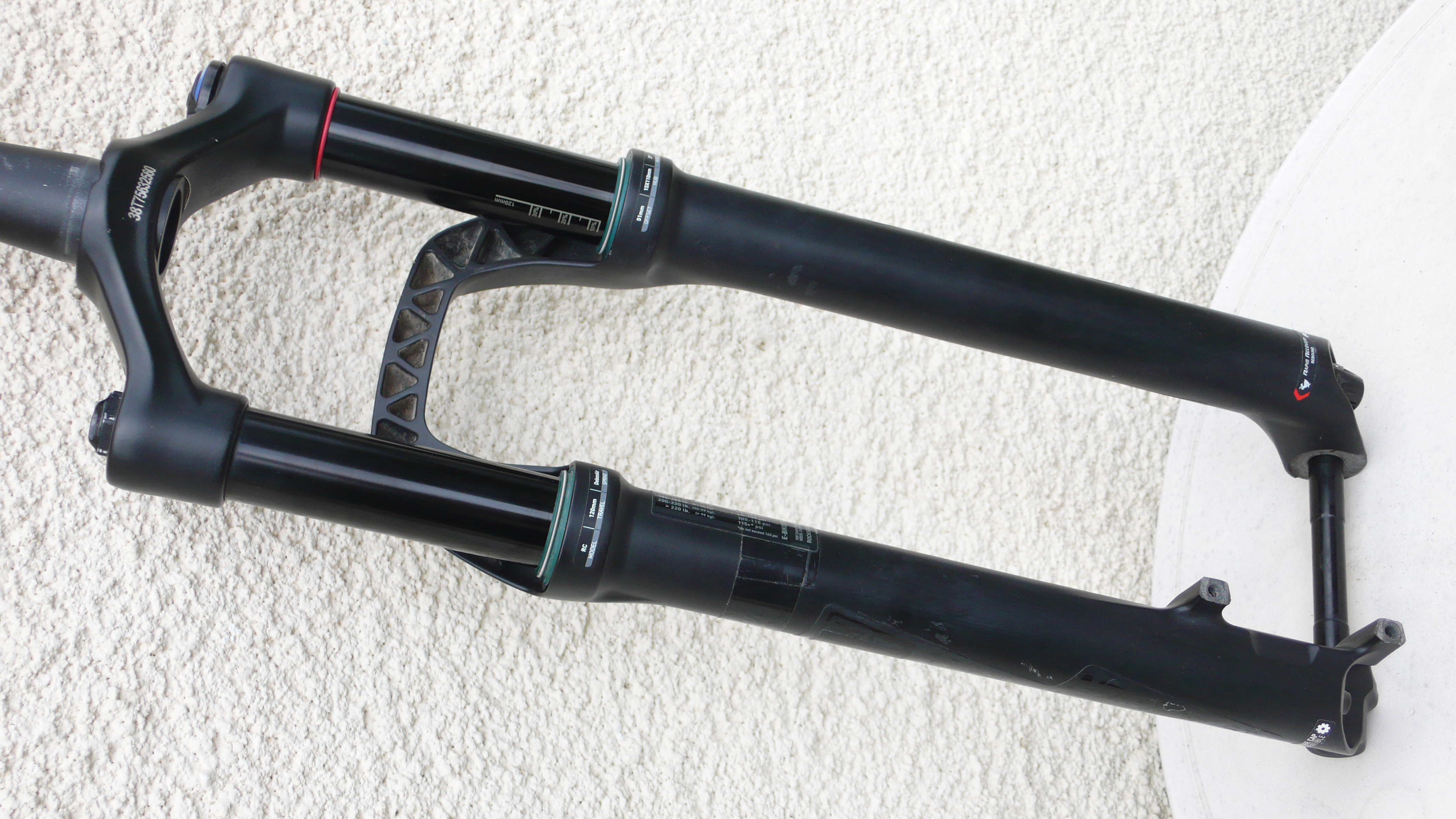 They are in decent condition. The adjusters are all working and the stanchions are undamaged. They do have a few cosmetic marks (see photos) and are due a lowers service (which I still haven’t learned to do…)
