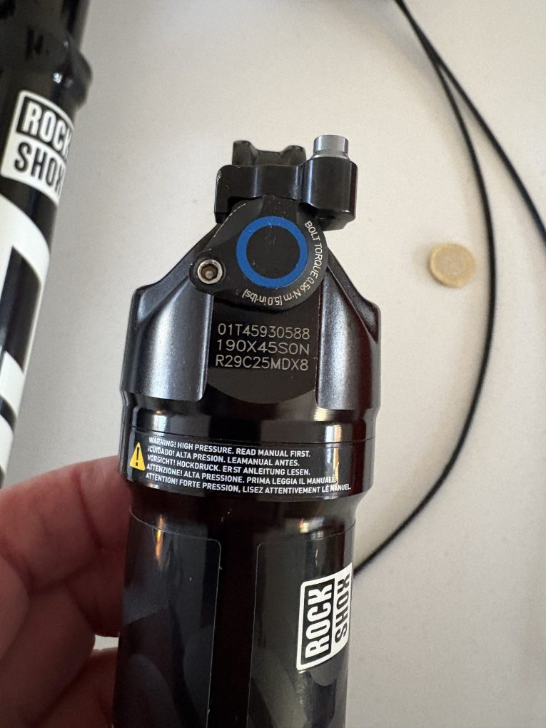 Rockshox SIDLuxe ultimate rear shock, 190×45, and specialized tune for an epic 8, 3 position again open, pedal, lock.