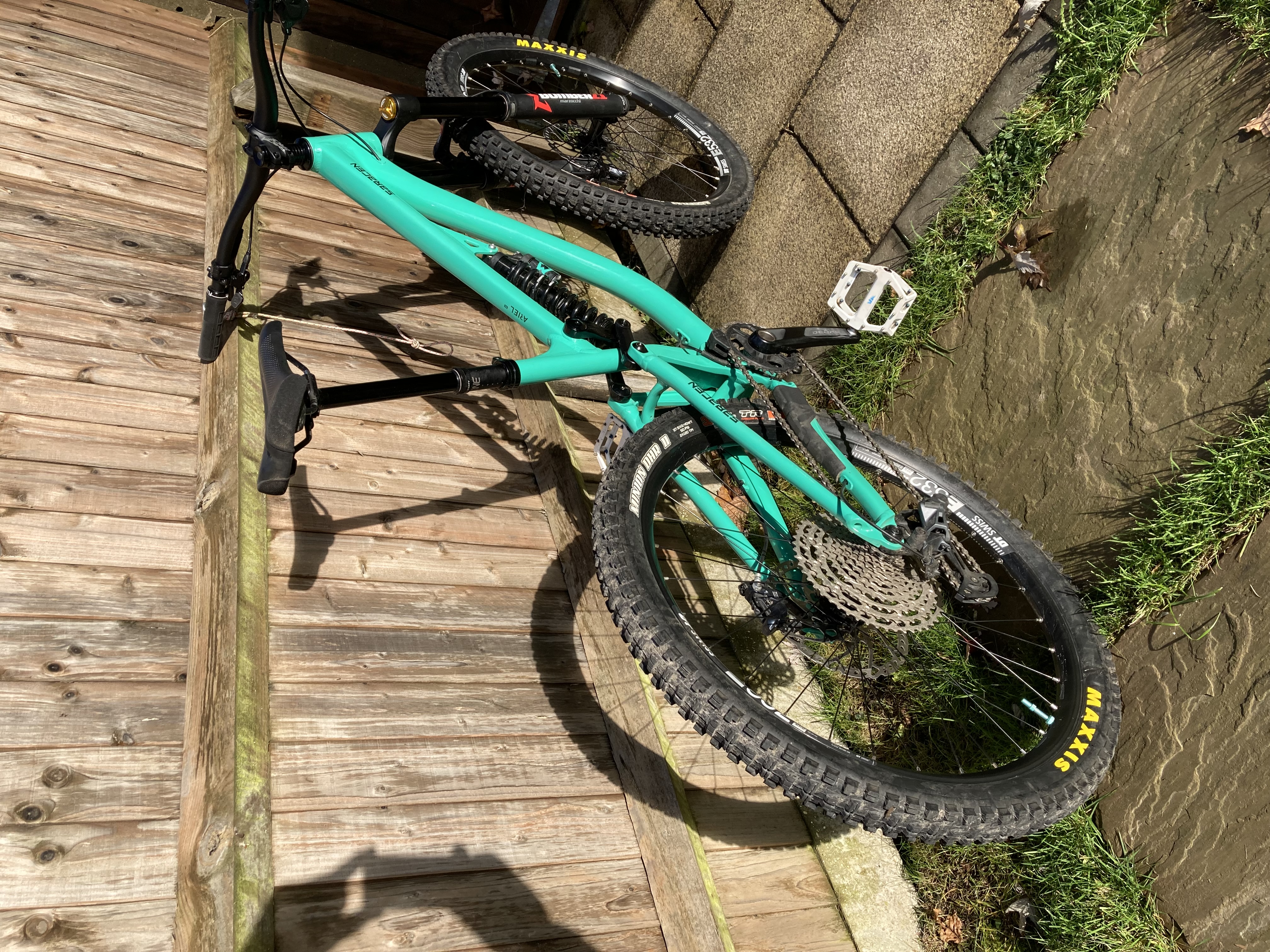 Wheels- DT Swiss E532 rims, KT hubs, boost front, superboost rear, 2.5 Maxxis Assegai Max Grip Exo+ front tyre and 2.4 DHR Max Terra DD rear set up tubeless