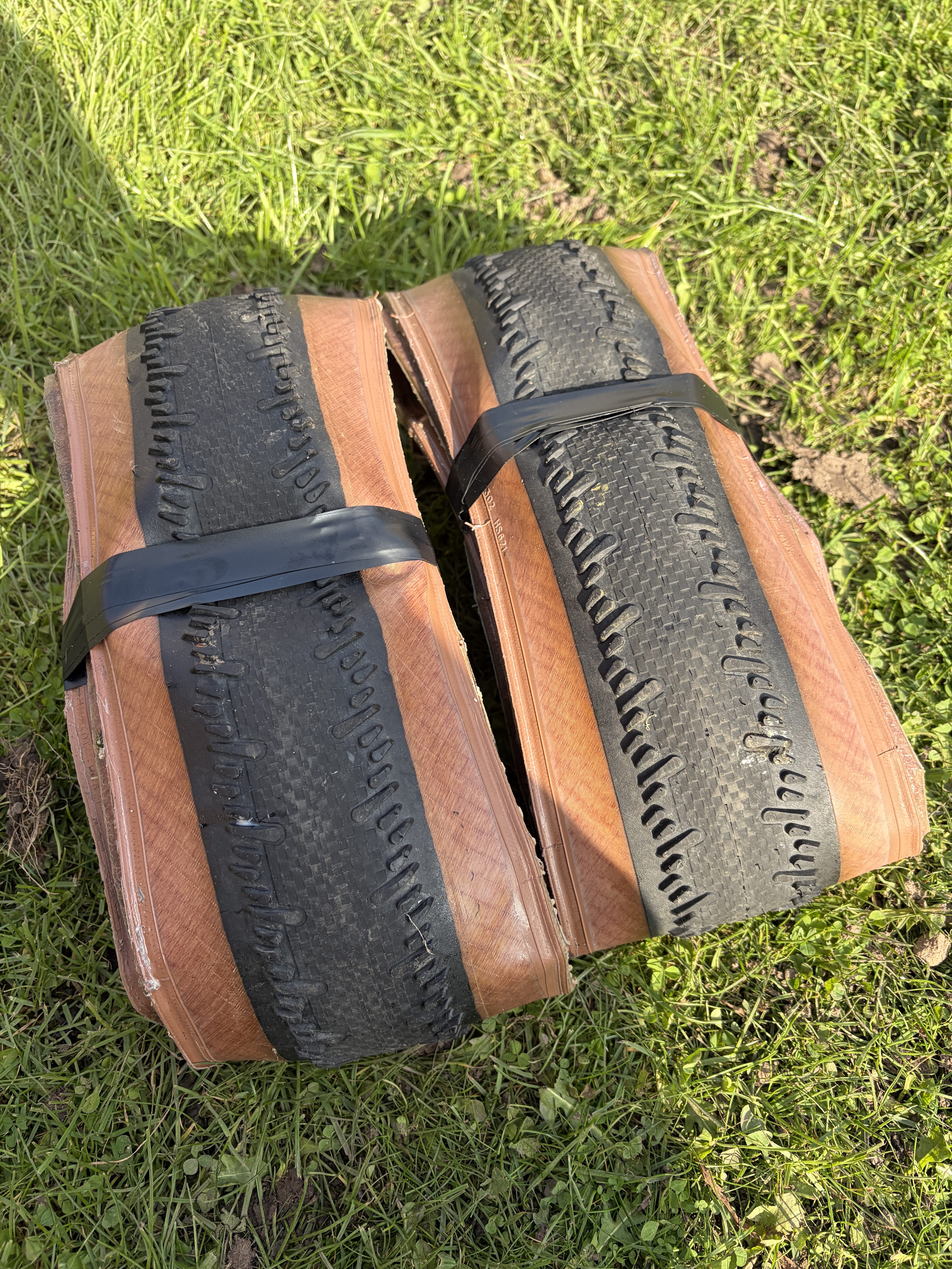 Pair of Schwalbe G One RS Pro 50mm. About 200km on them but I just don’t get on with them. Very fast on hard pack and the road but not great for my local riding I have been doing – want something with a bit more grip. Good reviews for speed etc. price includes postage and is for the pair