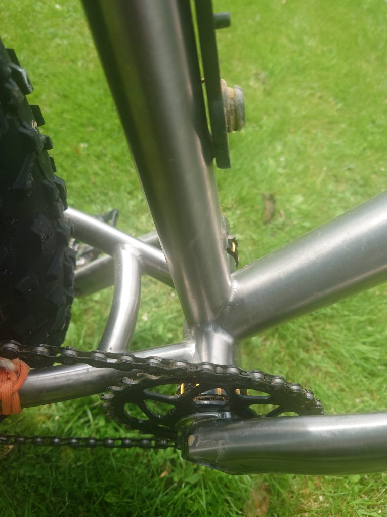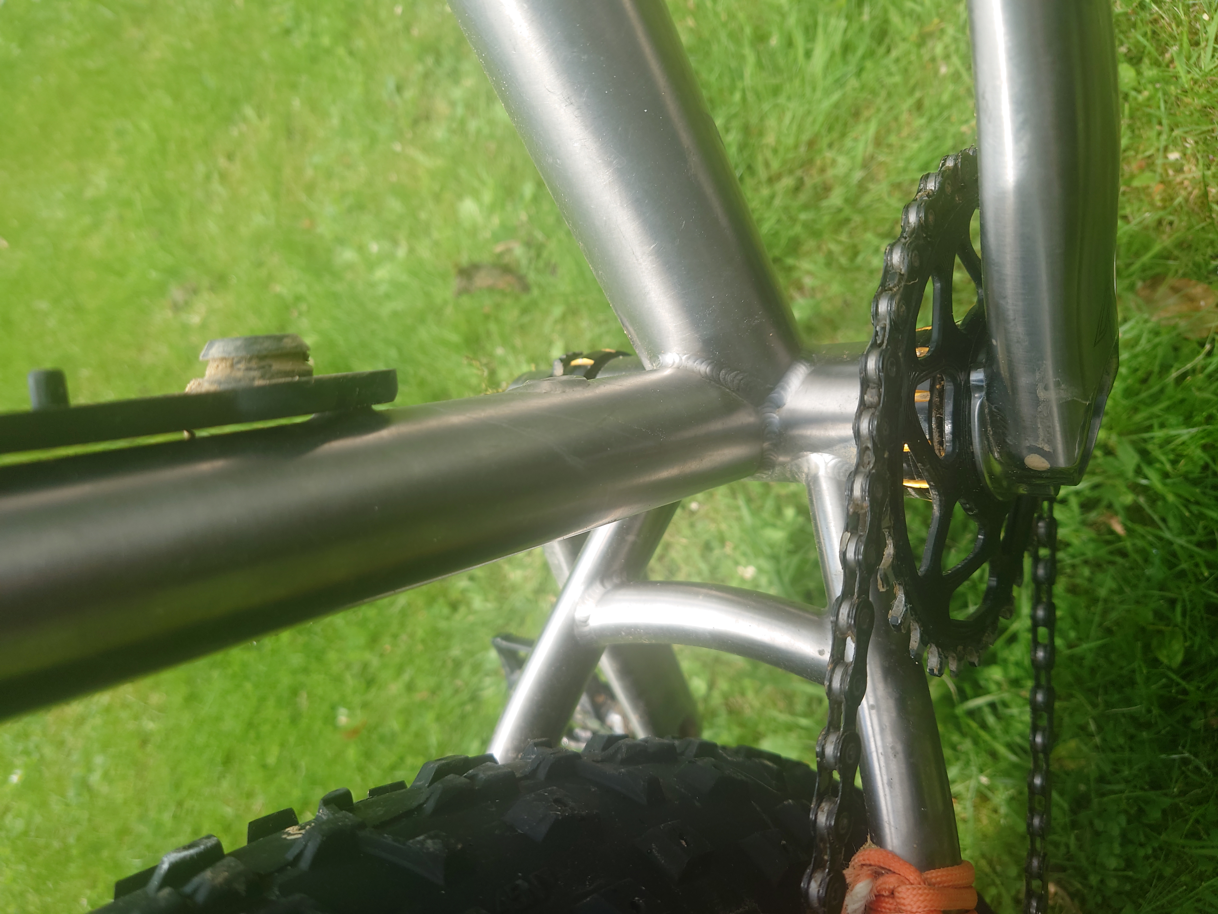 Wheels: rear hub is a Tune Kong, the lightest fat bike rear hub available I think I’ve a spare HG free hub which I’ll include. The front hub is a DT swiss. Rims are light bicycles 80mm carbon, can’t remember the name. But the wheels weigh in at sub 1800g.