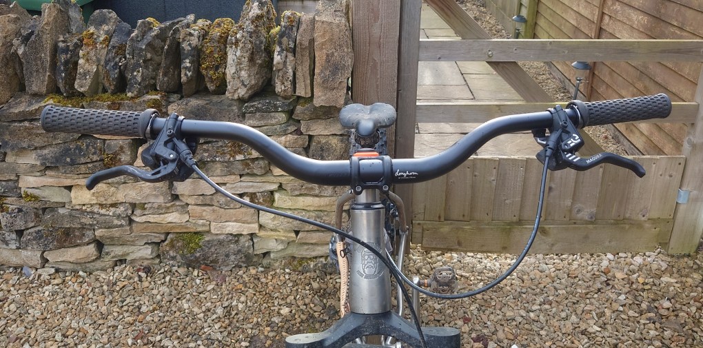 Bar: currently has Hudski Longhorn’s, imported from the US, but I can swap out for a Pro carbon flat bar or Ritchey trail bar which has some sweep to it if preferred.