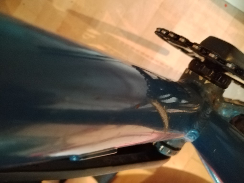 This was used as a commuter so has many, many miles on the clock, frame and fork paint condition can only be described as very poor, I’ve tried pointing out the main gouges (on headtube, from trying too large a chainring and under bb).