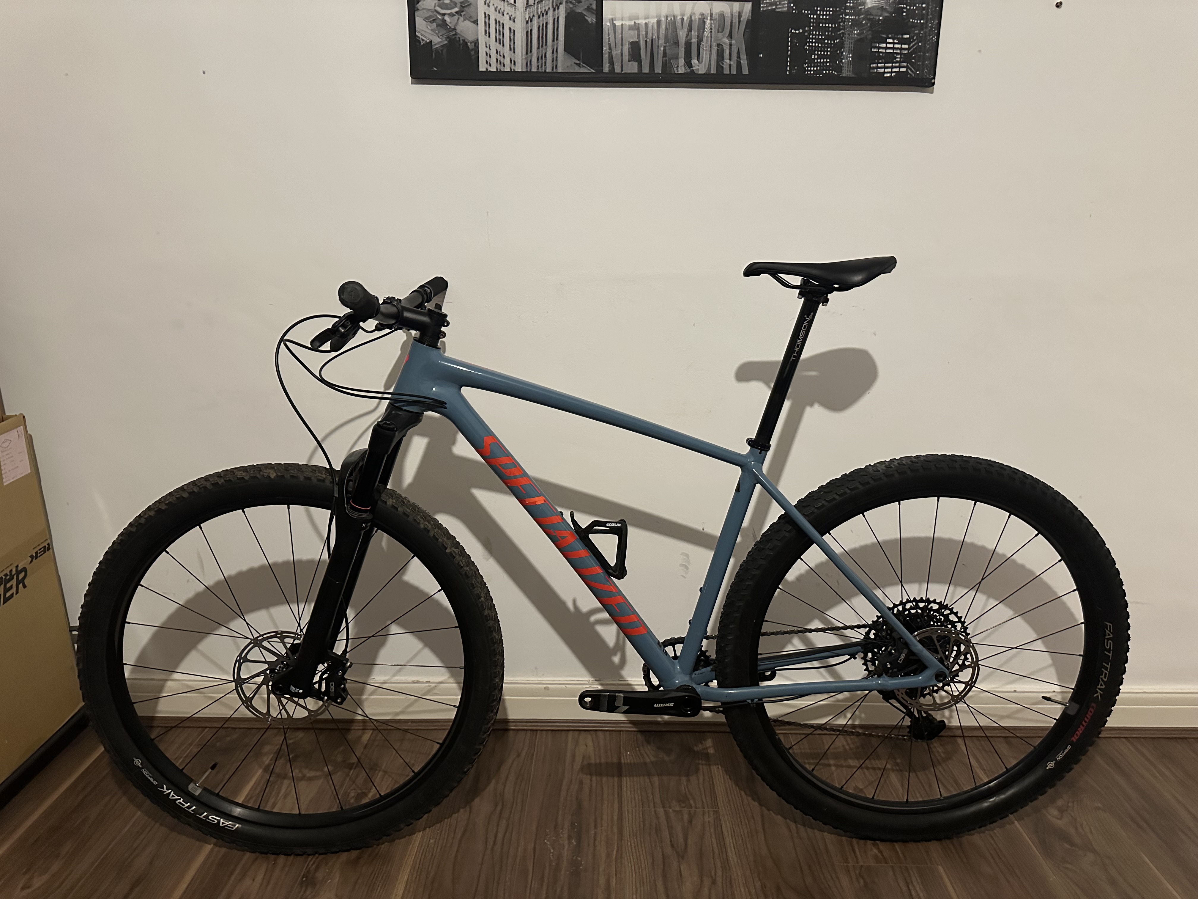 For sale my chisel. 2019 model frame ( has some tiny scratches / cable and tyre rub ) built up with 2021 hardly used original parts from an epic. Specialized lightweight aluminium boost wheelset. Rock Shox Judy Gold 100mm fork. Sram Nx Eagle 1×12 speed drivetrain. Sram db8 4pot hydraulic brakes. All the bearings in the wheels – headset – bb running smooth as a new. Chain cassette also perfect, not streched at all. Absolut ready to ride.