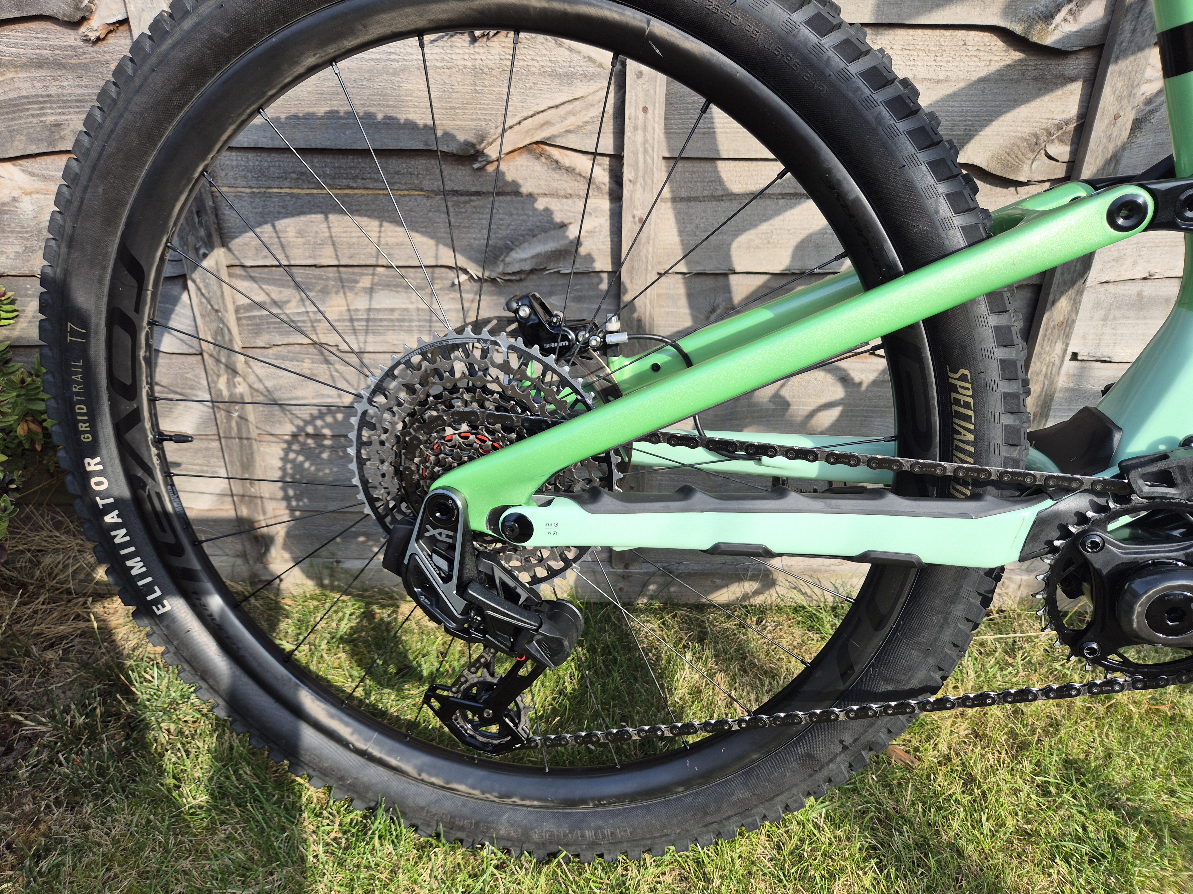 Carbon roval 29er wheels front and rear, rear is the higher spec traverse SL based on DT Swiss 240 hub.