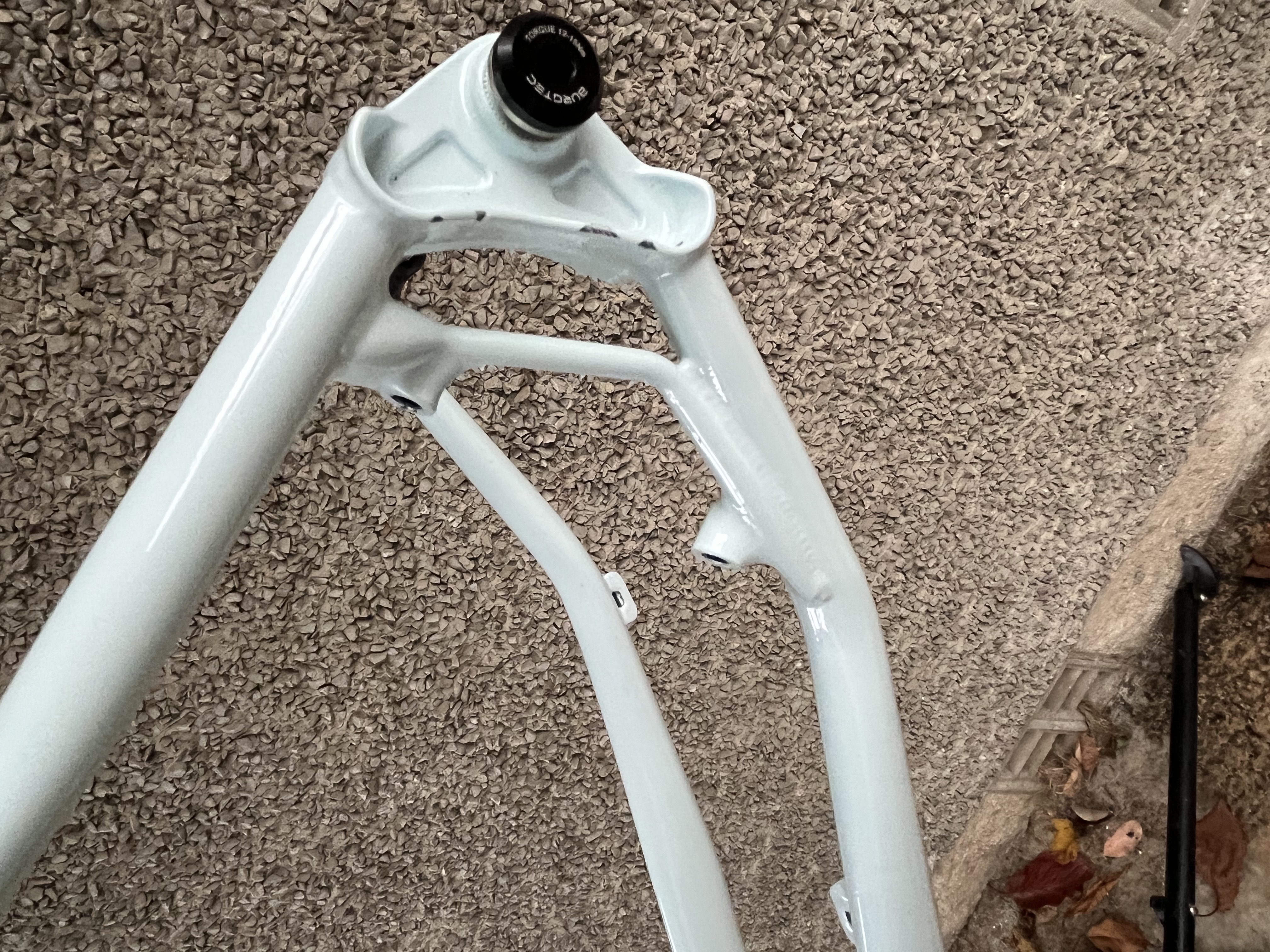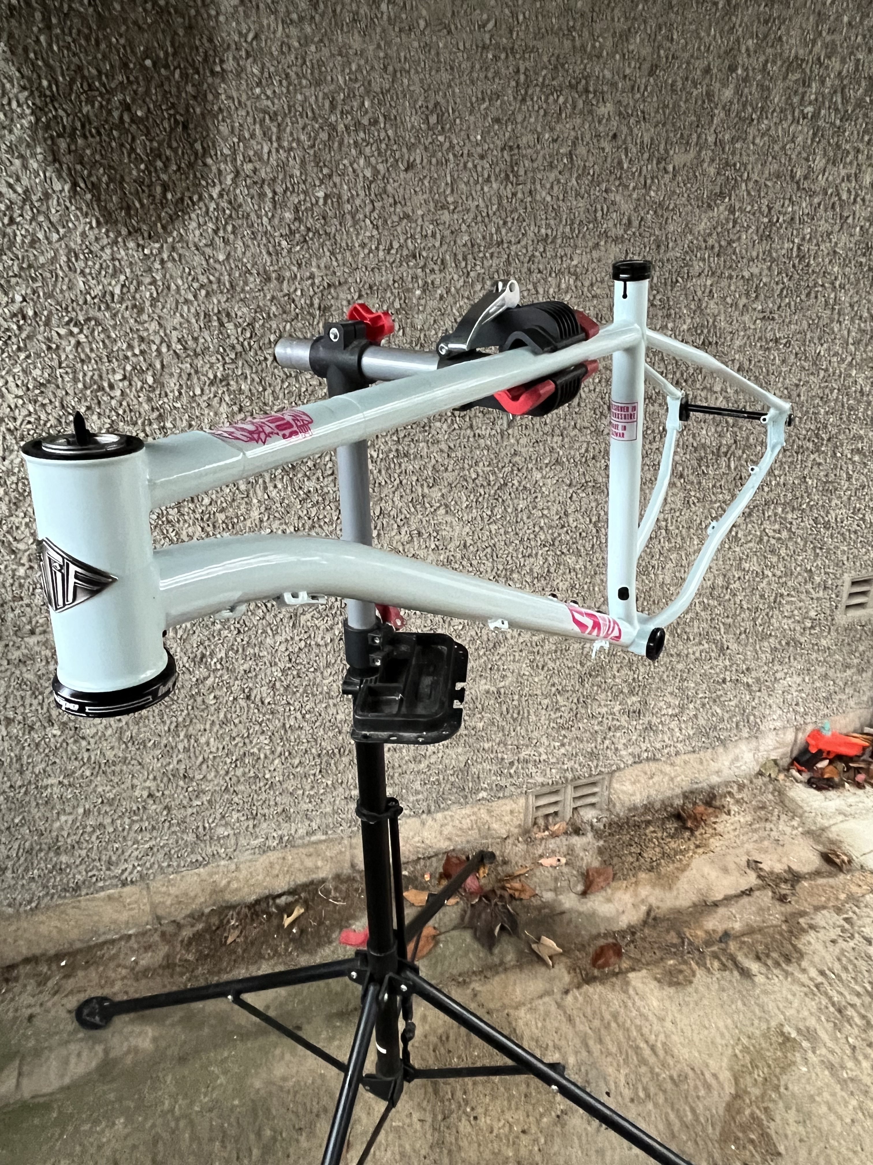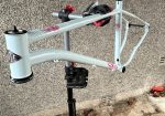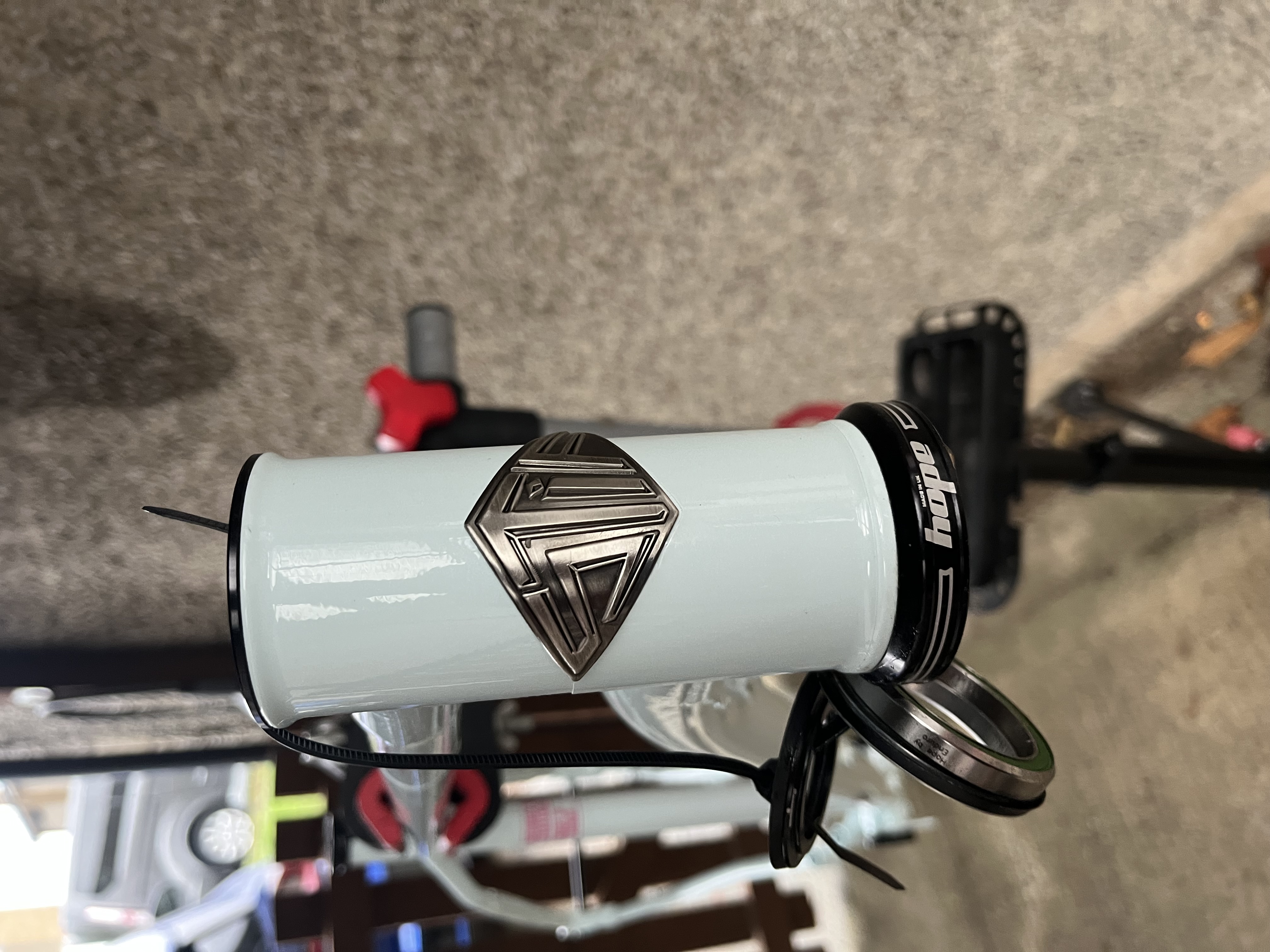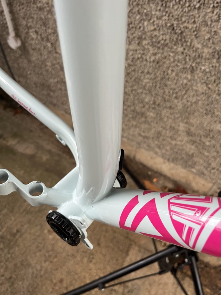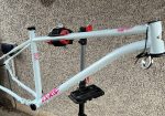 Included is the frame, Sram Dub bottom bracket and Hope headset. I am happy to remove the headset and reduce the price by £50 if preferred. Both fitted parts came with the bike so are in virtually as new condition. The paint is in excellent shape as you would imagine with only a couple of paint chips, one from the chain when removing the rear wheel, the other from storage. The frame is designed for 29″ wheels, 130mm forks and a 31.6mm seat post. Most of the full build parts are also available and can be negotiated.