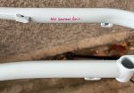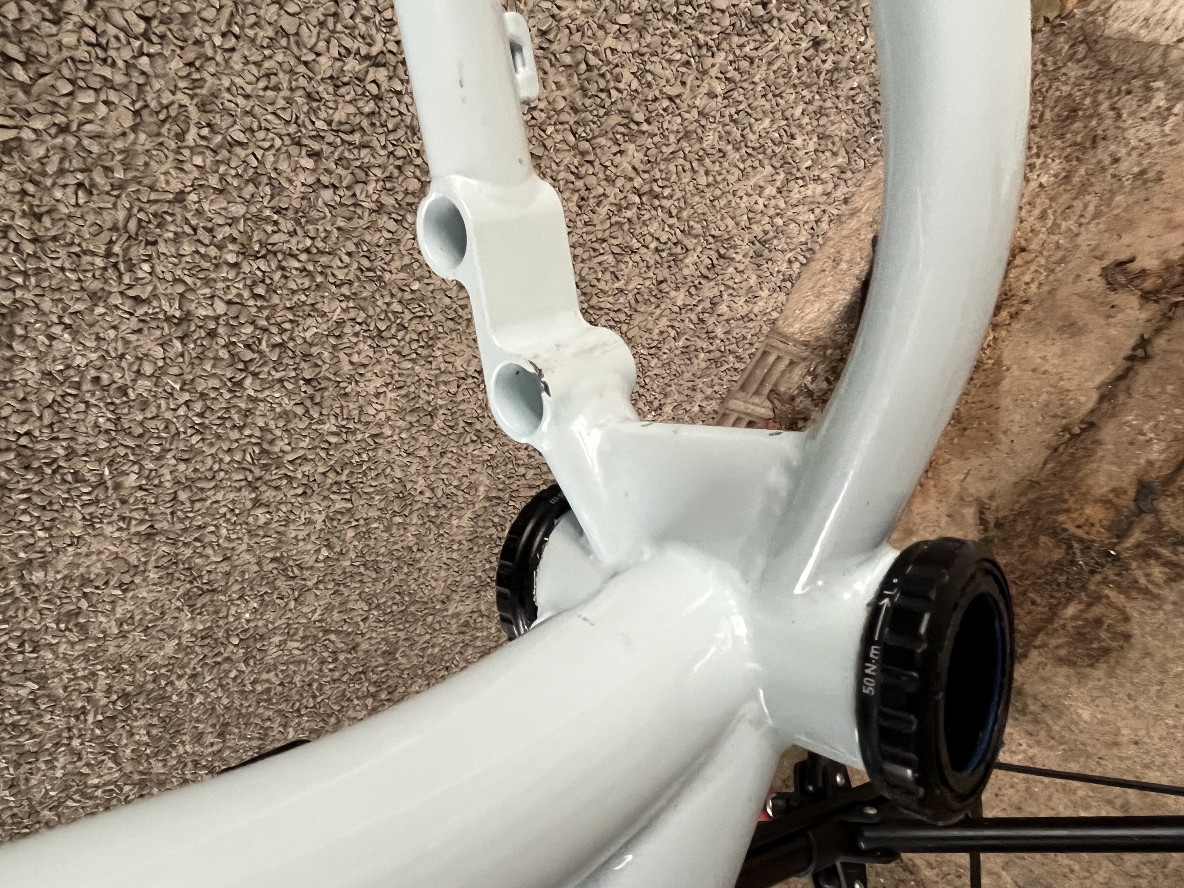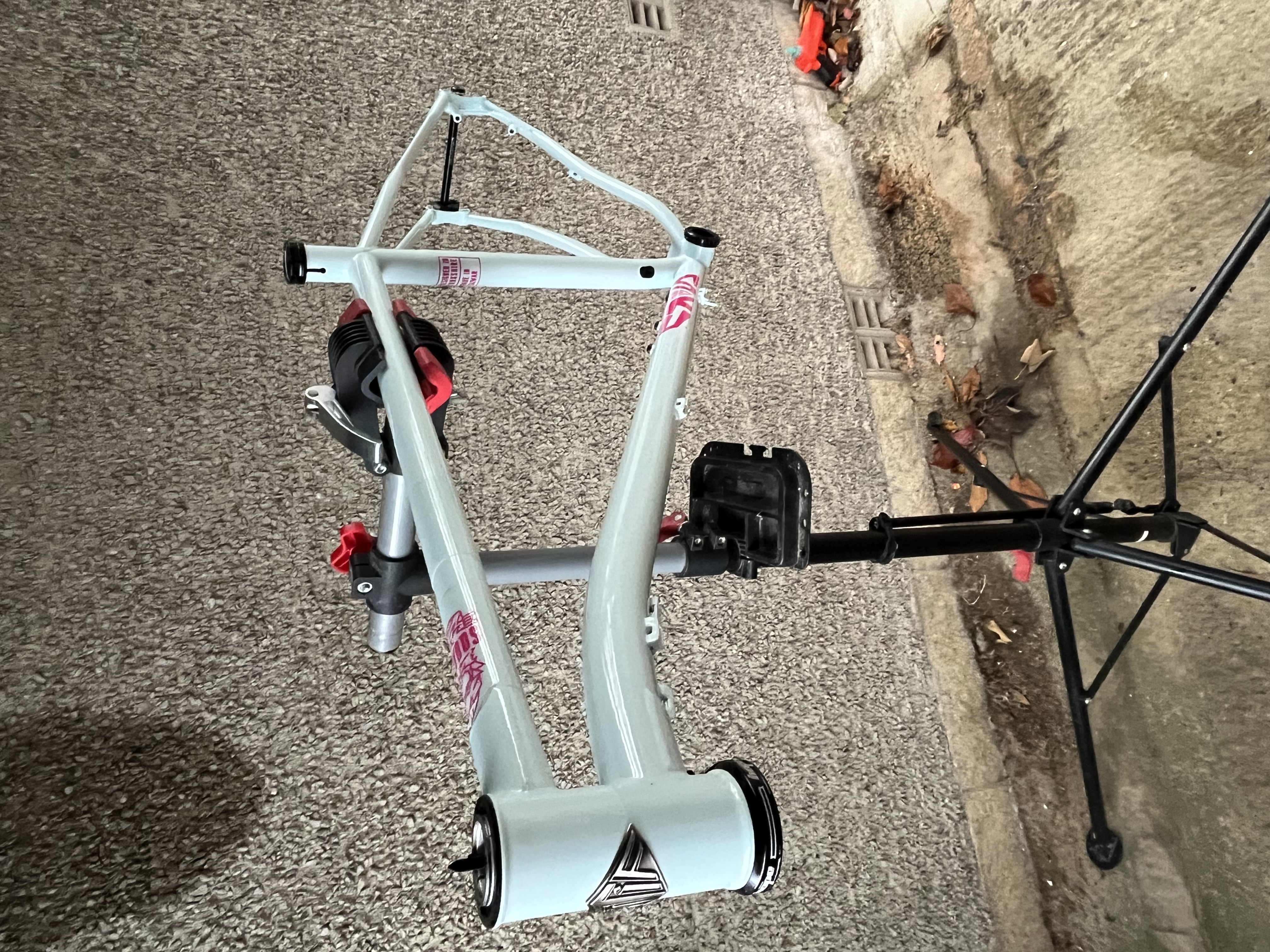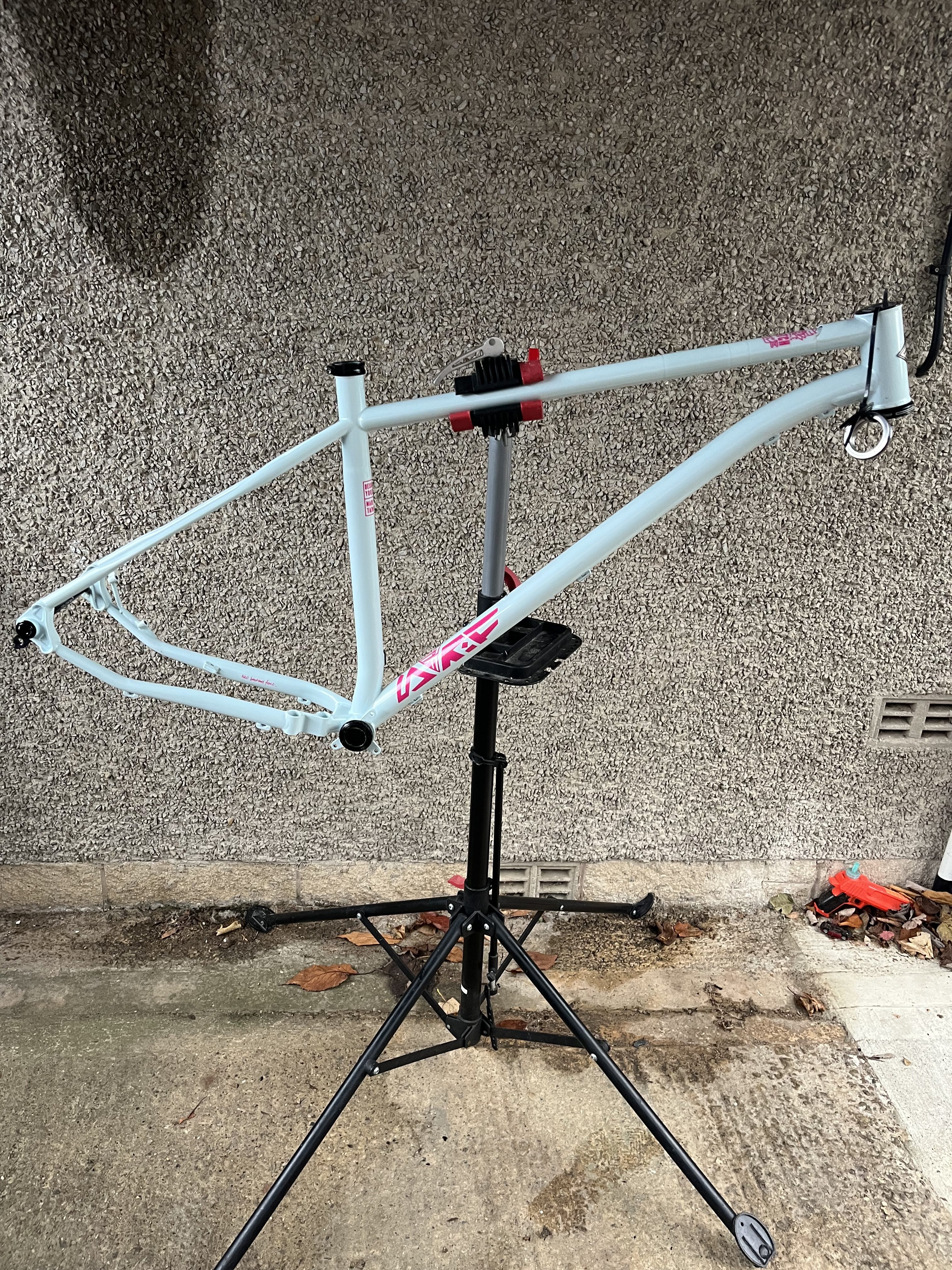 Included is the frame, Sram Dub bottom bracket and Hope headset. I am happy to remove the headset and reduce the price by £50 if preferred. Both fitted parts came with the bike so are in virtually as new condition. The paint is in excellent shape as you would imagine with only a couple of paint chips, one from the chain when removing the rear wheel, the other from storage. The frame is designed for 29″ wheels, 130mm forks and a 31.6mm seat post. Most of the full build parts are also available and can be negotiated.