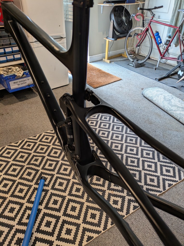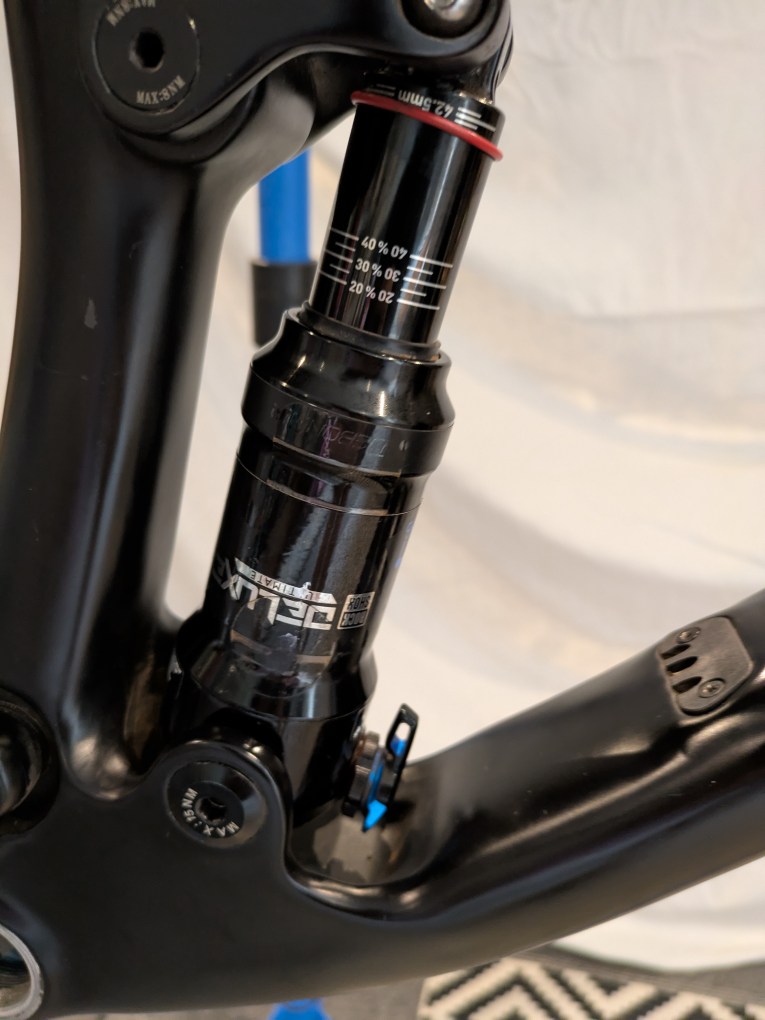 it has 110mm shock, and can use 110-120mm forks. I also have a brand X dropper (1500mm) I think which I can sell separately.