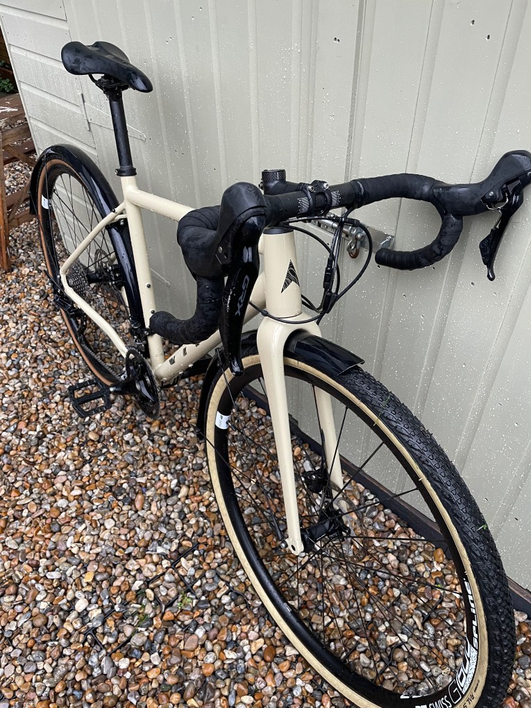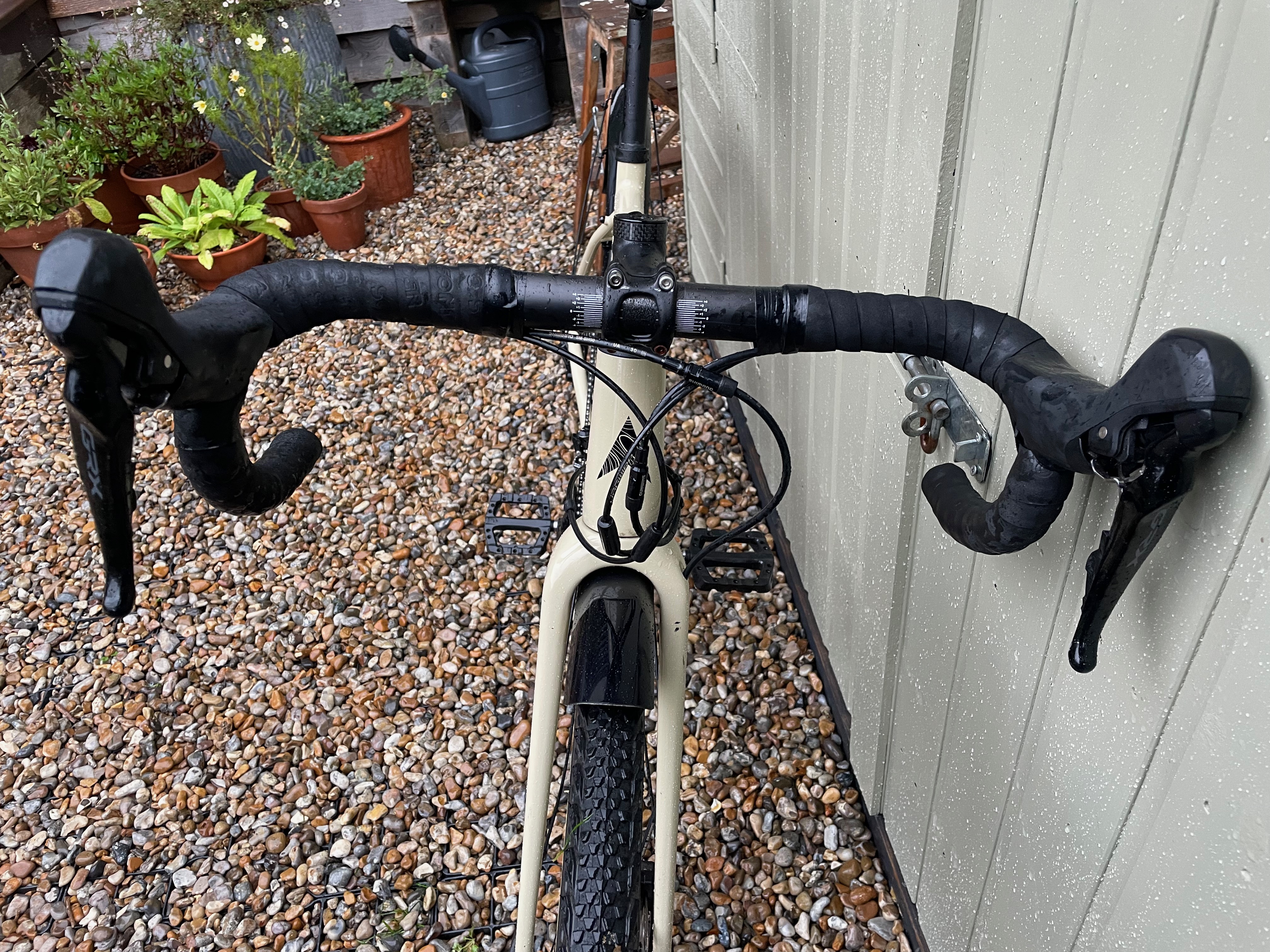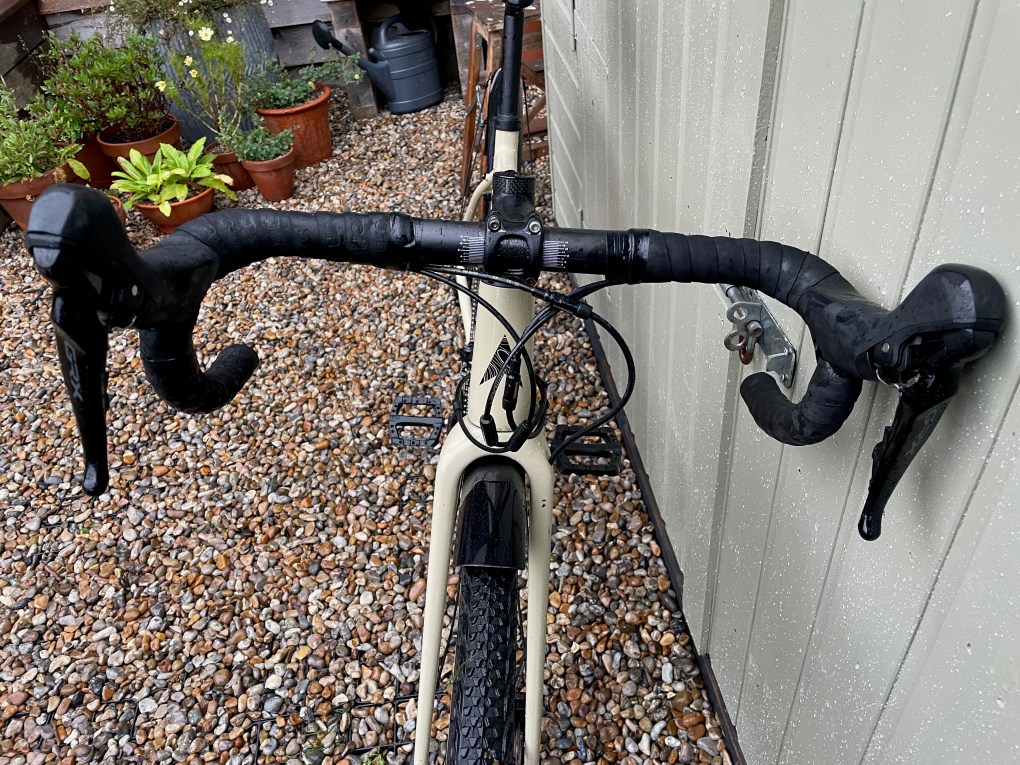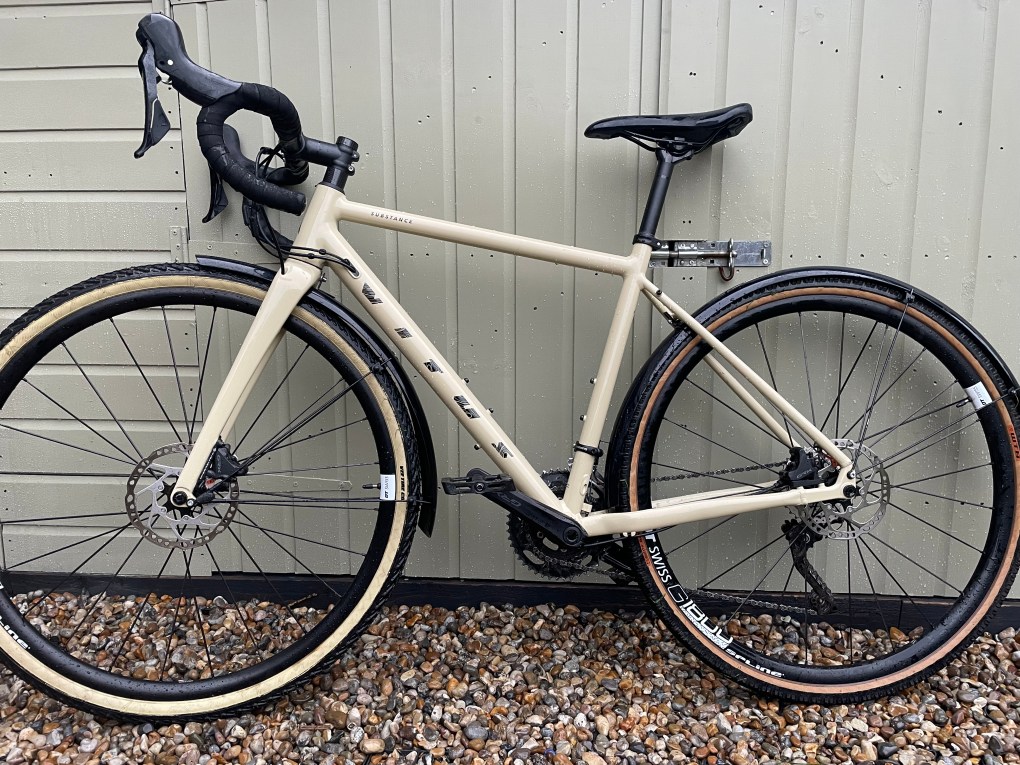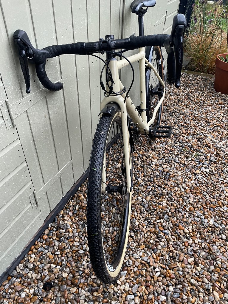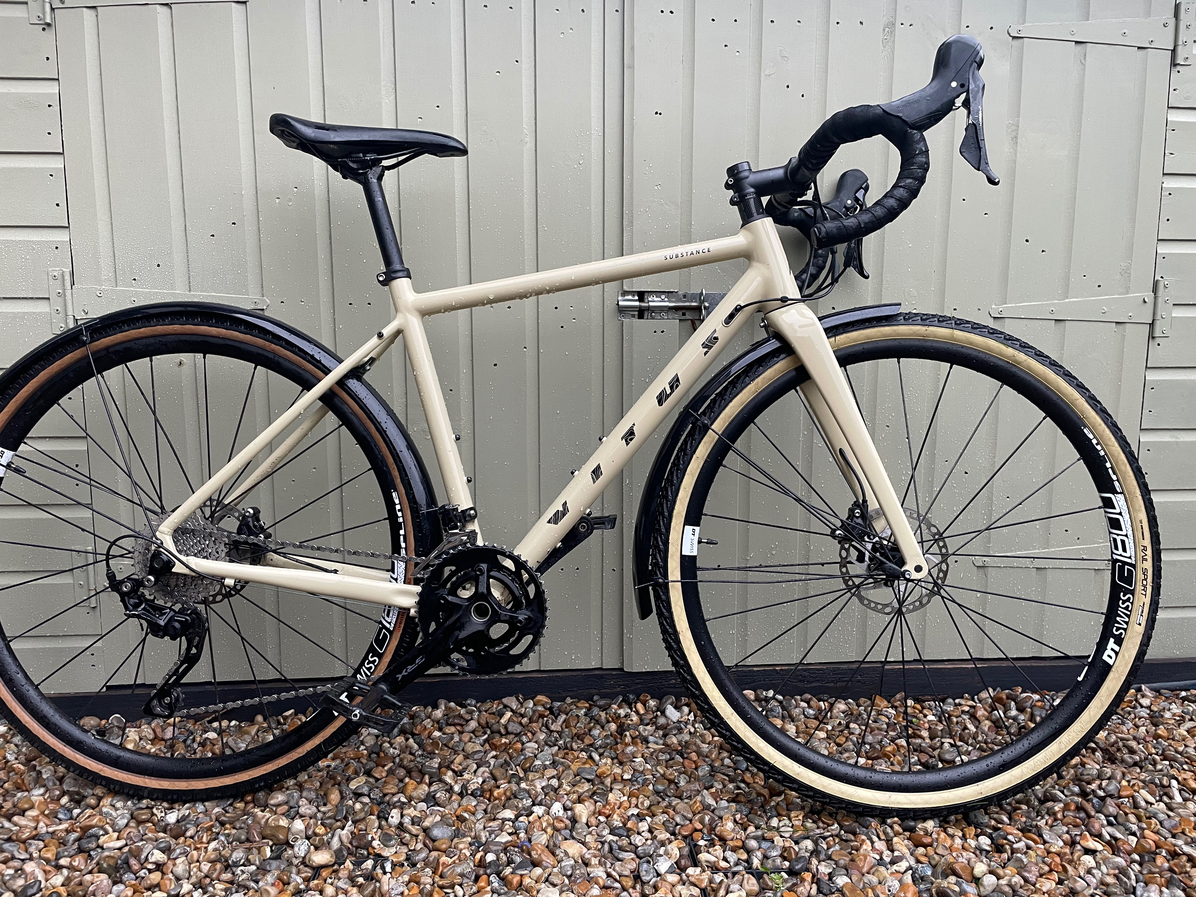 Vitus Substance gravel bike. Size small. Recommended 5′ 4″ – 5′ 7″. Bought April 23 and only used on the road. Full Shimano GRX 400. 2 x 10 speed. DT Wheels & set up tubeless. Upgraded to carbon handlebars (Planet X). Bristol BS6.
