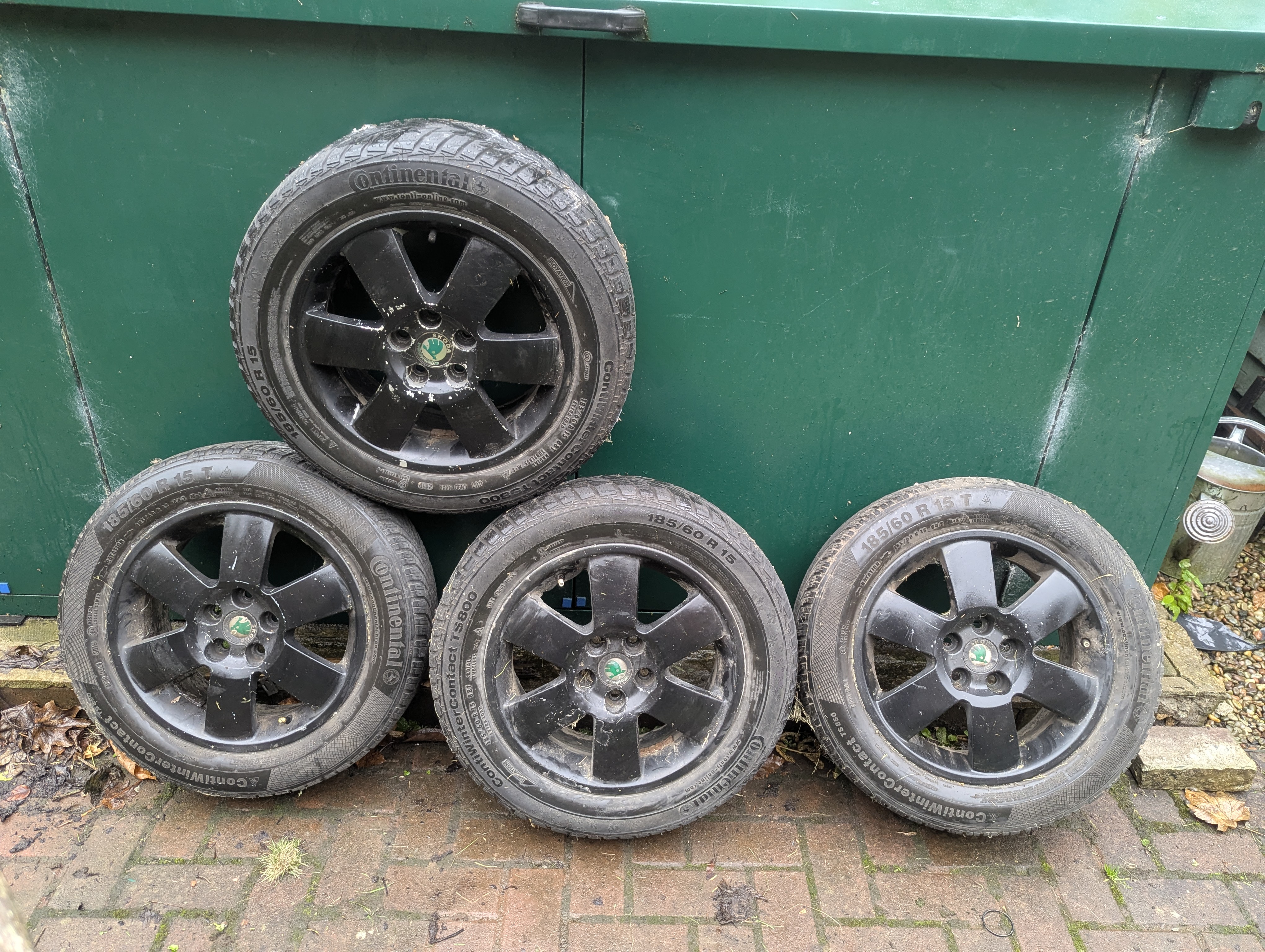 Set of four 15″ alloys from my 2016 Skoda Fabia with Continental WinterContact tyres which all have decent tread left on them. Collection from Edinburgh, but I could be tempted to post if you’re happy to pay for it.