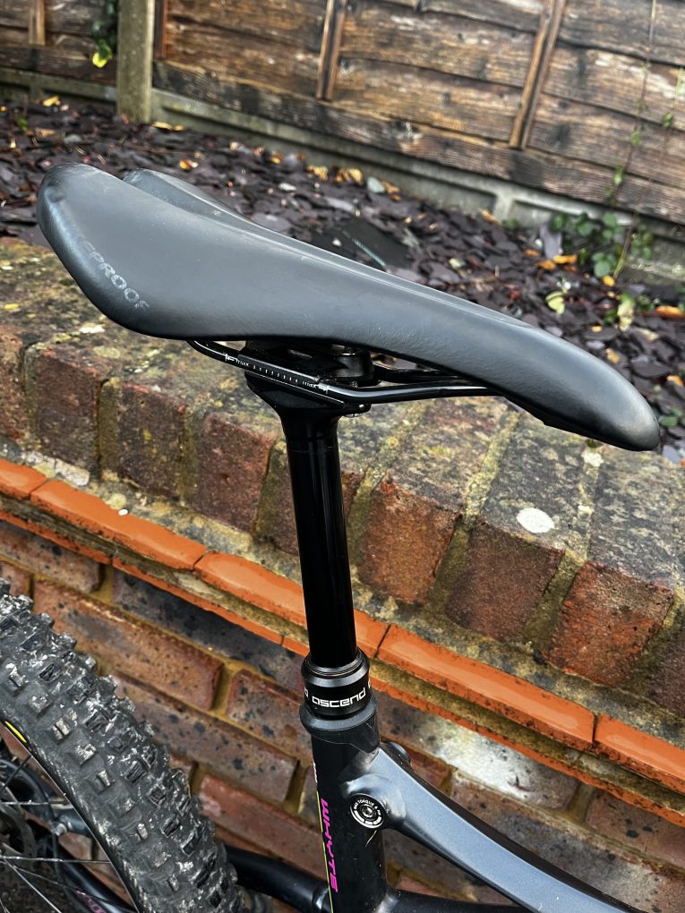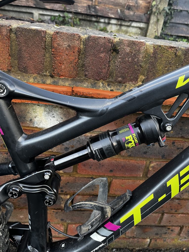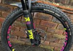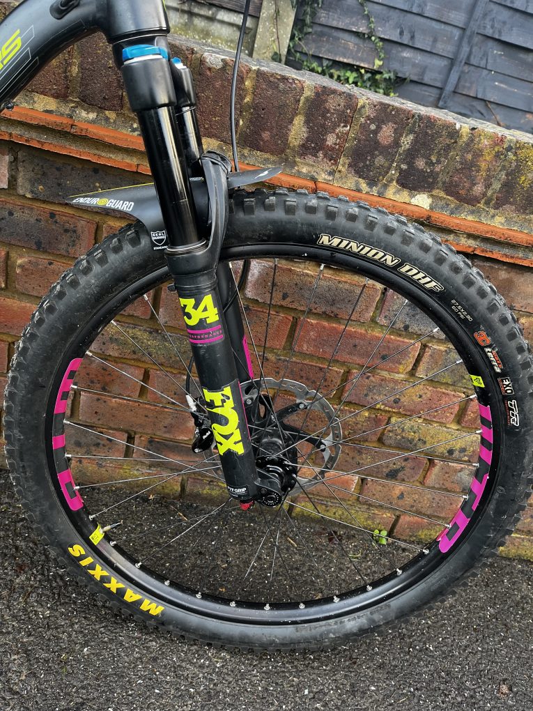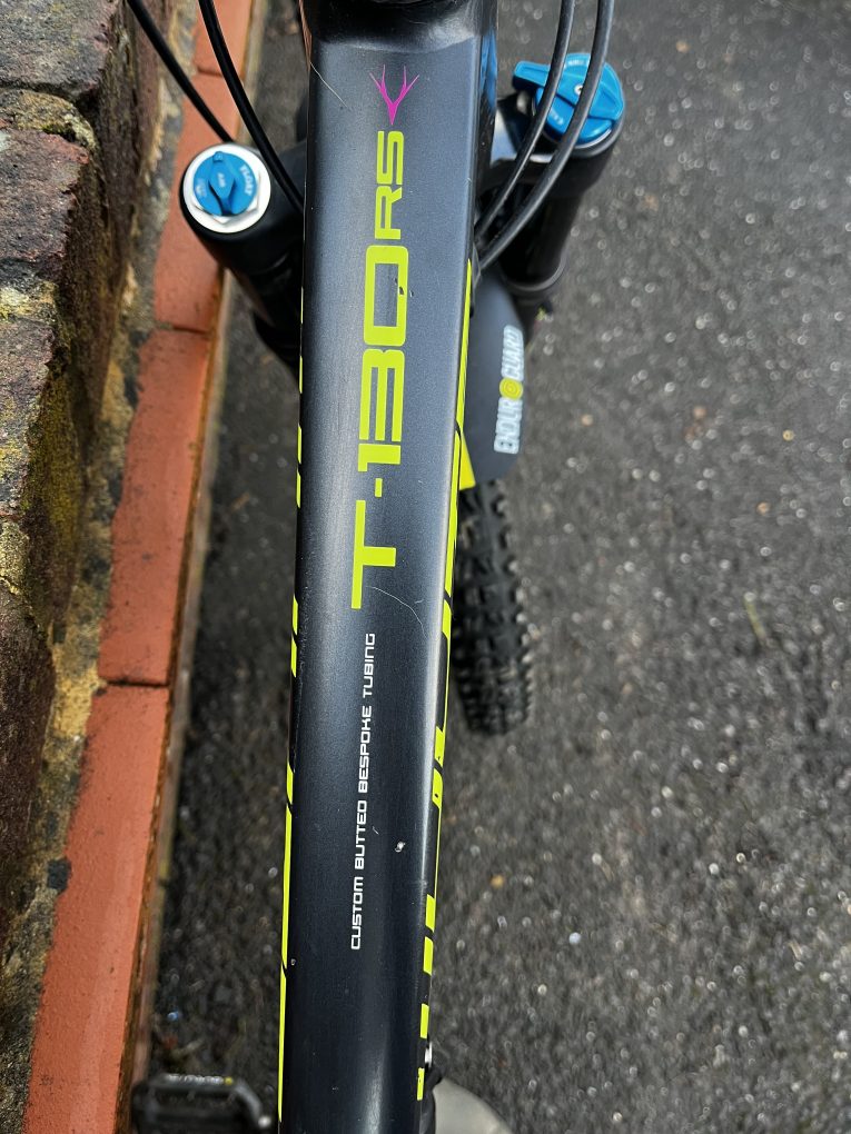 Pretty standard, but a few changes from original spec – 140mm air shafted fitted in forks (old one included as well), different brakes and dropper to originals, better Maxis Minion tyres, Nukeproof saddle, Ergon lock on grips but stated below.