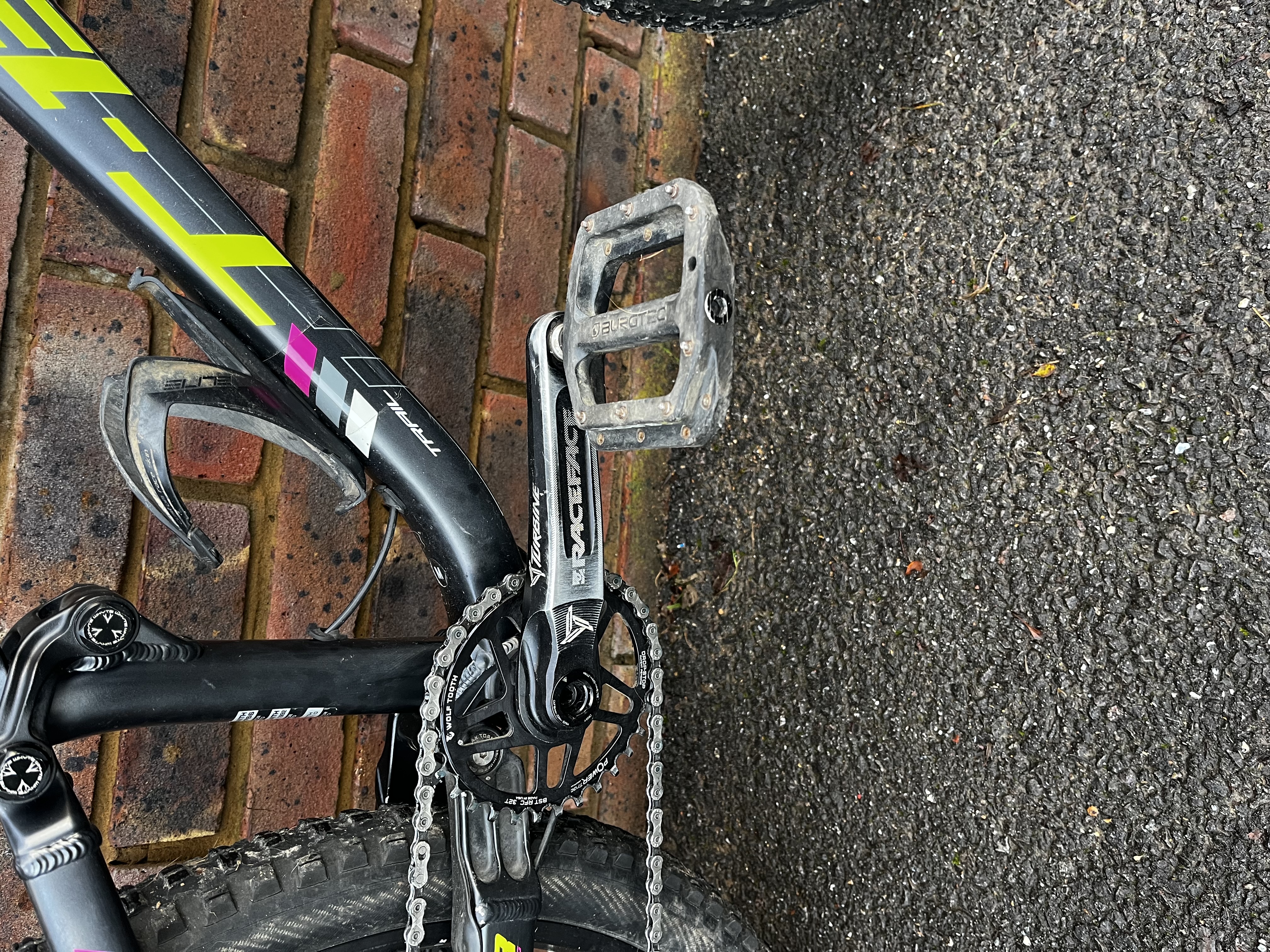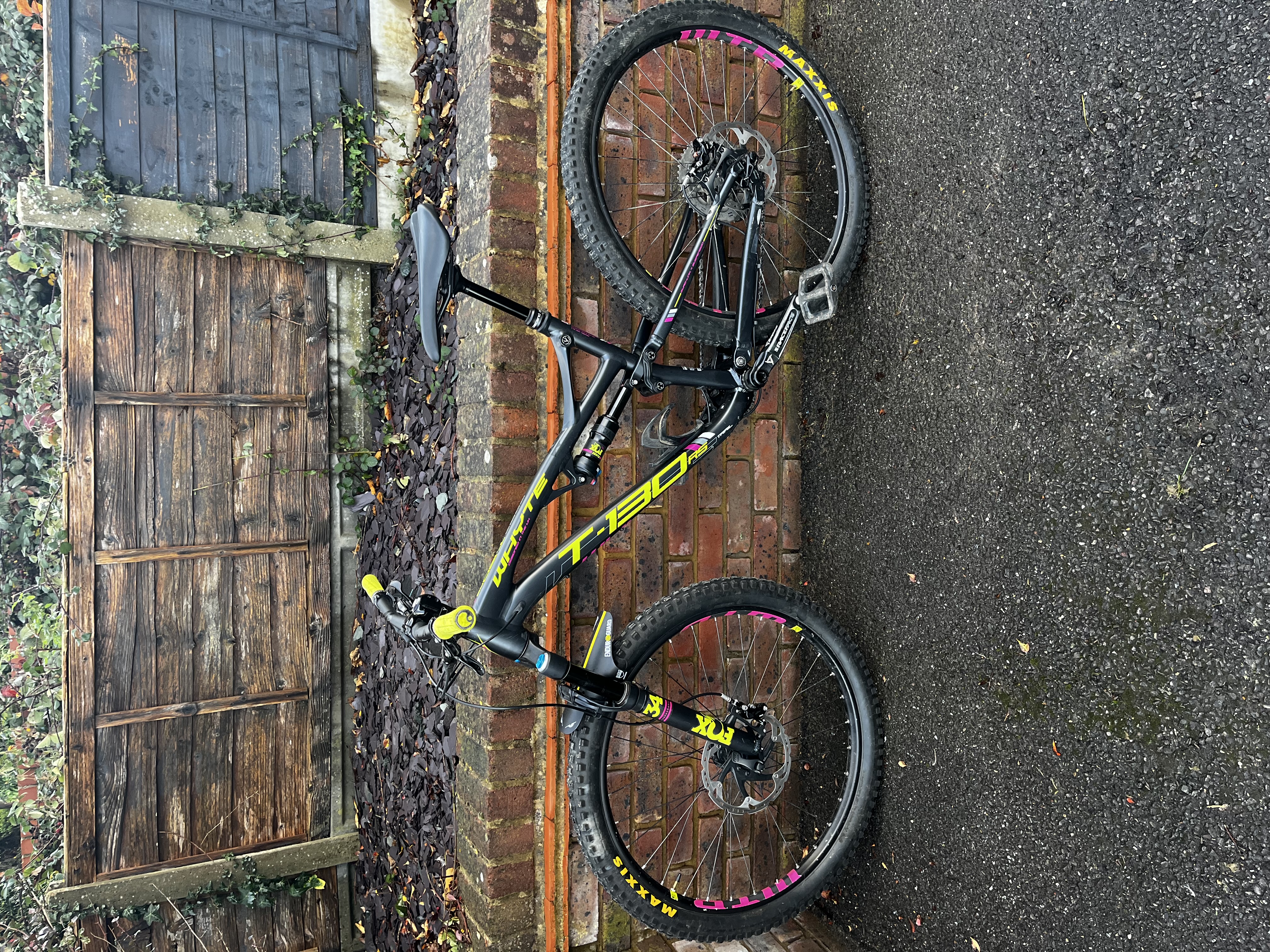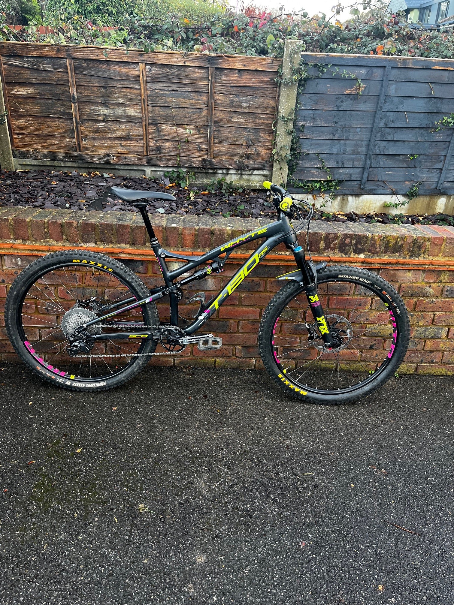 Pretty standard, but a few changes from original spec – 140mm air shafted fitted in forks (old one included as well), different brakes and dropper to originals, better Maxis Minion tyres, Nukeproof saddle, Ergon lock on grips but stated below.