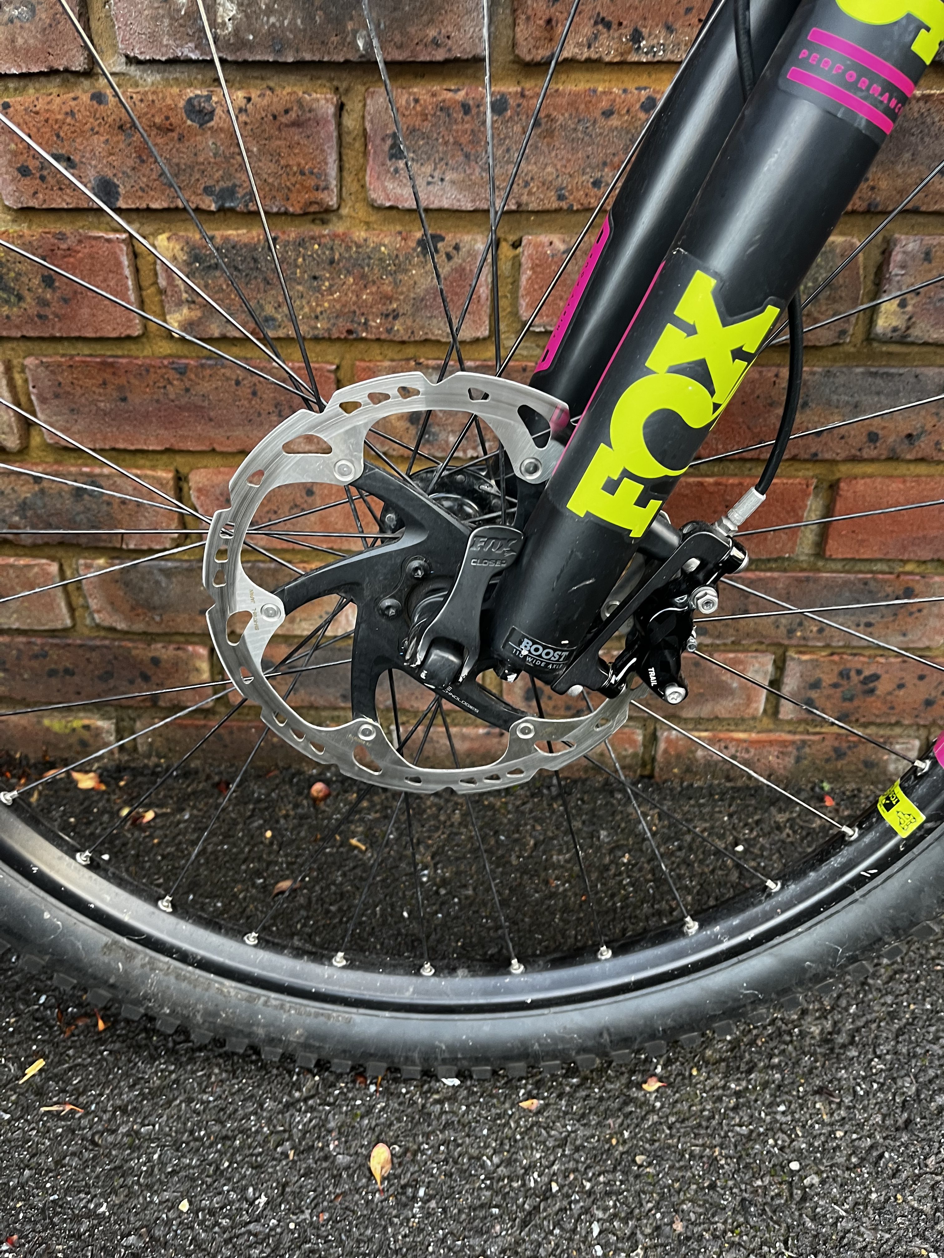 Forks and shock hold air. Tyres set up tubeless. Dropper works great. Gears indexed well. New pads in the brakes so a bit squeally. Pedals not included.