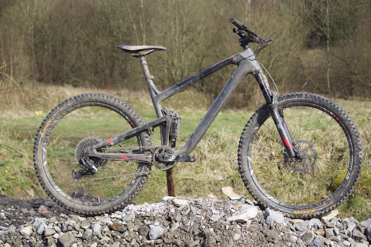 Also sitting in the JAM range is the JAM C Factory. Like the SL model, the C Factory is equipped with a carbon fibre front triangle, but subs in an alloy swingarm to decrease cost at not a huge weight penalty. The suspension design is the same, but being the ‘Factory’ model, it’s got a slightly burlier parts spec that upgrades the fork to a bigger 150mm fork, while throwing a piggyback RockShox Monarch Plus into the rear.