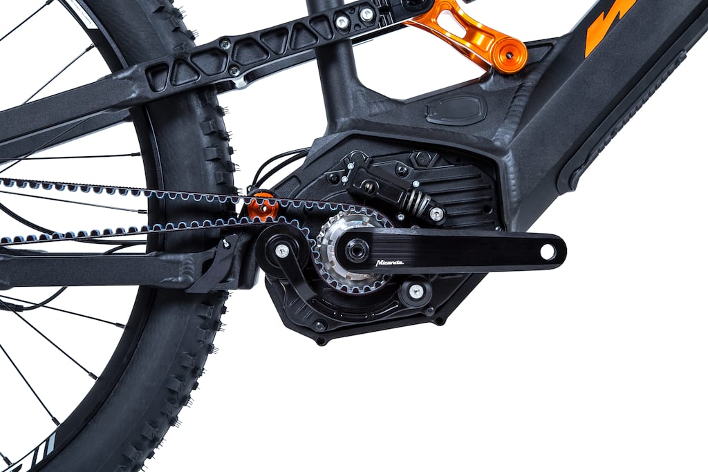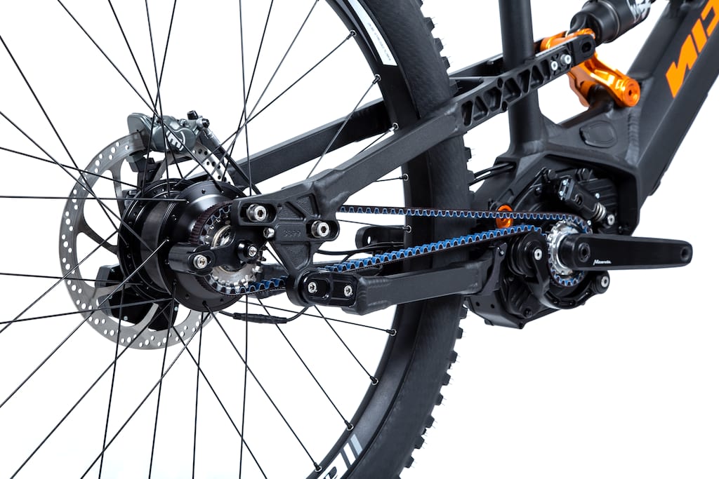 Forget the days of oil-smeared chains and join the Gates Carbon Drive Revolution. Clean, smooth, robust and light. These are the advantages of the Gates Carbon Drive™ system. The carbon reinforced belts are as stiff as a chain, have a longer life, run dry without lubrication and are virtually maintenance free. With an Ebike, the motor power and human power must be transmitted together to the rear wheel. Derailleur gears therefore wear relatively quickly in this application. We wanted to change this and developed the Nicolai EBOXX E14, the world‘s first E-MTB equipped with a GATES belt drive. Designed and optimized for all off-road riders.