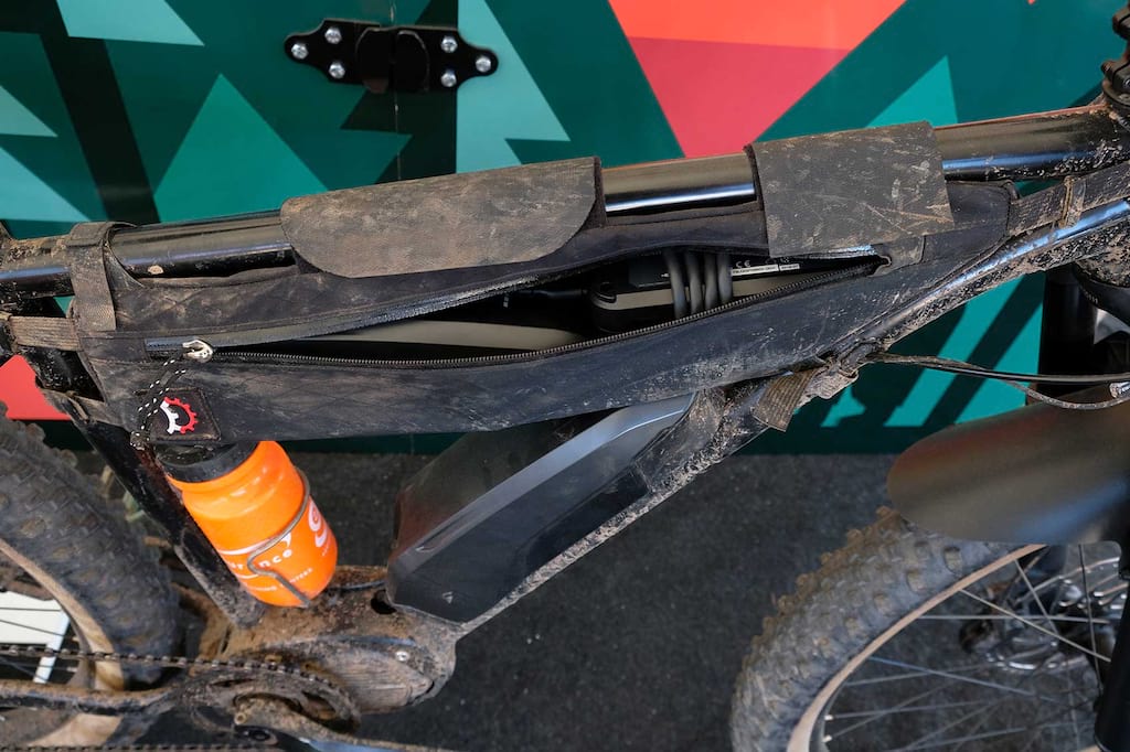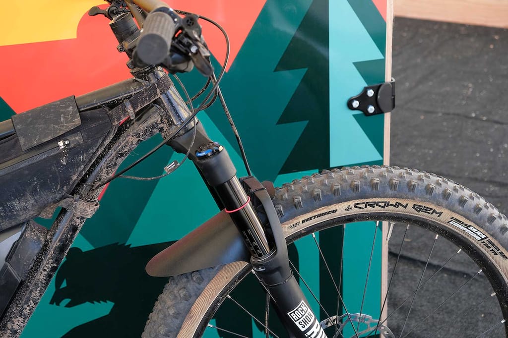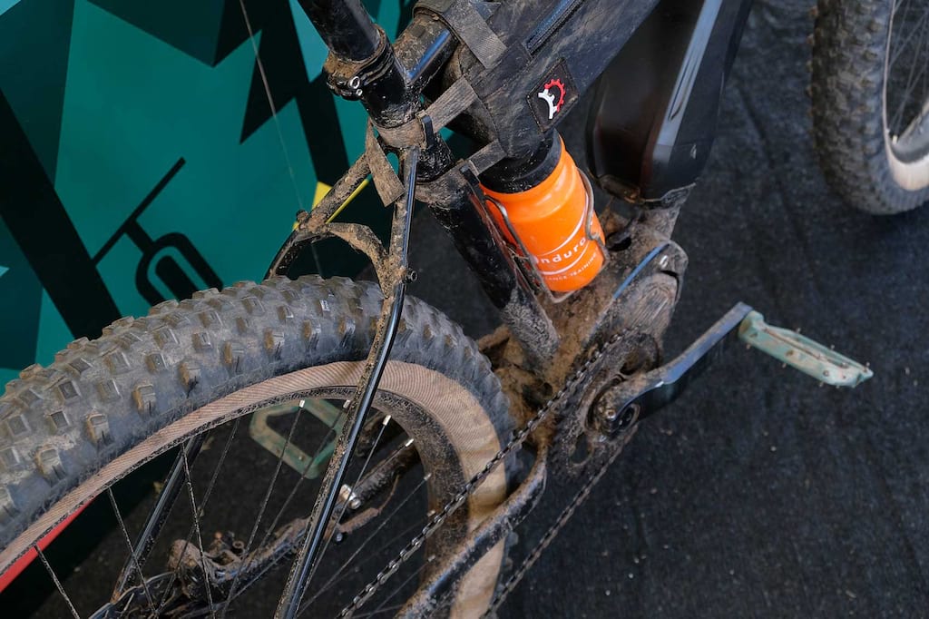 Even with some Vee Tire Crown Gem plus tyres, at 27.5 x 2.8in, there was a ton of room, suggesting that running a chunky 29in set up would also be possible. The bike itself runs a mix of SRAM NX off the Shimano motor up front. There are Revelation forks and an X-Fusion dropper, so it suggests that the bike won’t be stupid-expensive. Perhaps it’ll appeal to riders who want an affordable steel hardtail, but who have aspirations of some backcountry adventure.