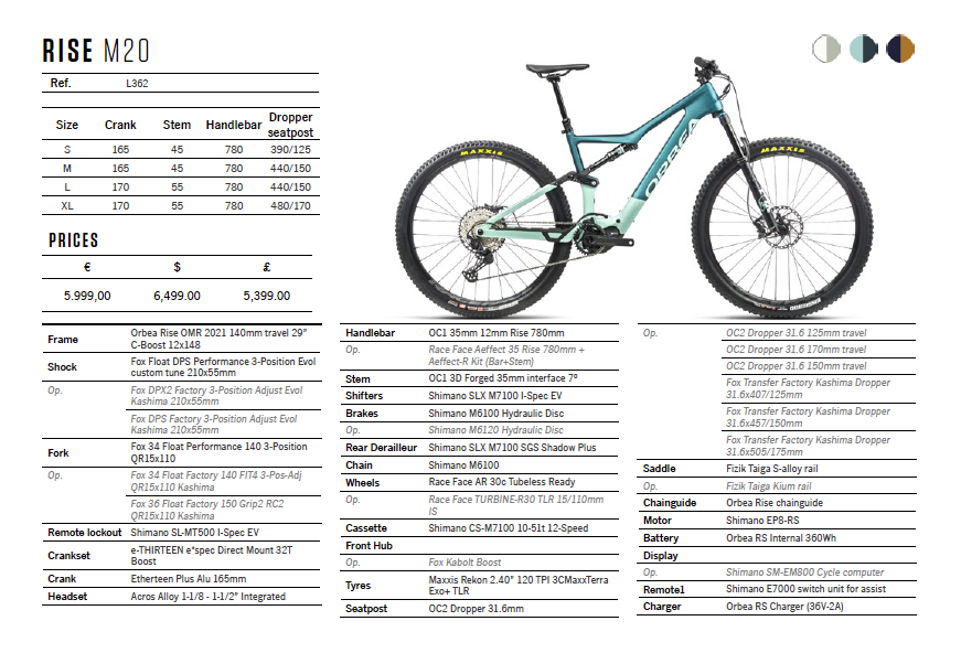 The Orbea Rise is another of those seemingly unintuitive developments in the eMTB journey that deliberately goes for less power both in the motor output and the battery capacity. At first it seems odd that anyone would deliberately not choose to go for the more power, more torque = better formula, but we’ve seen brands like Specialized and Focus spend a lot of development time concentrating efforts to retain the lively, light weight (relatively) trail feel of an analogue bike but with a helping power assisted hand when needed.