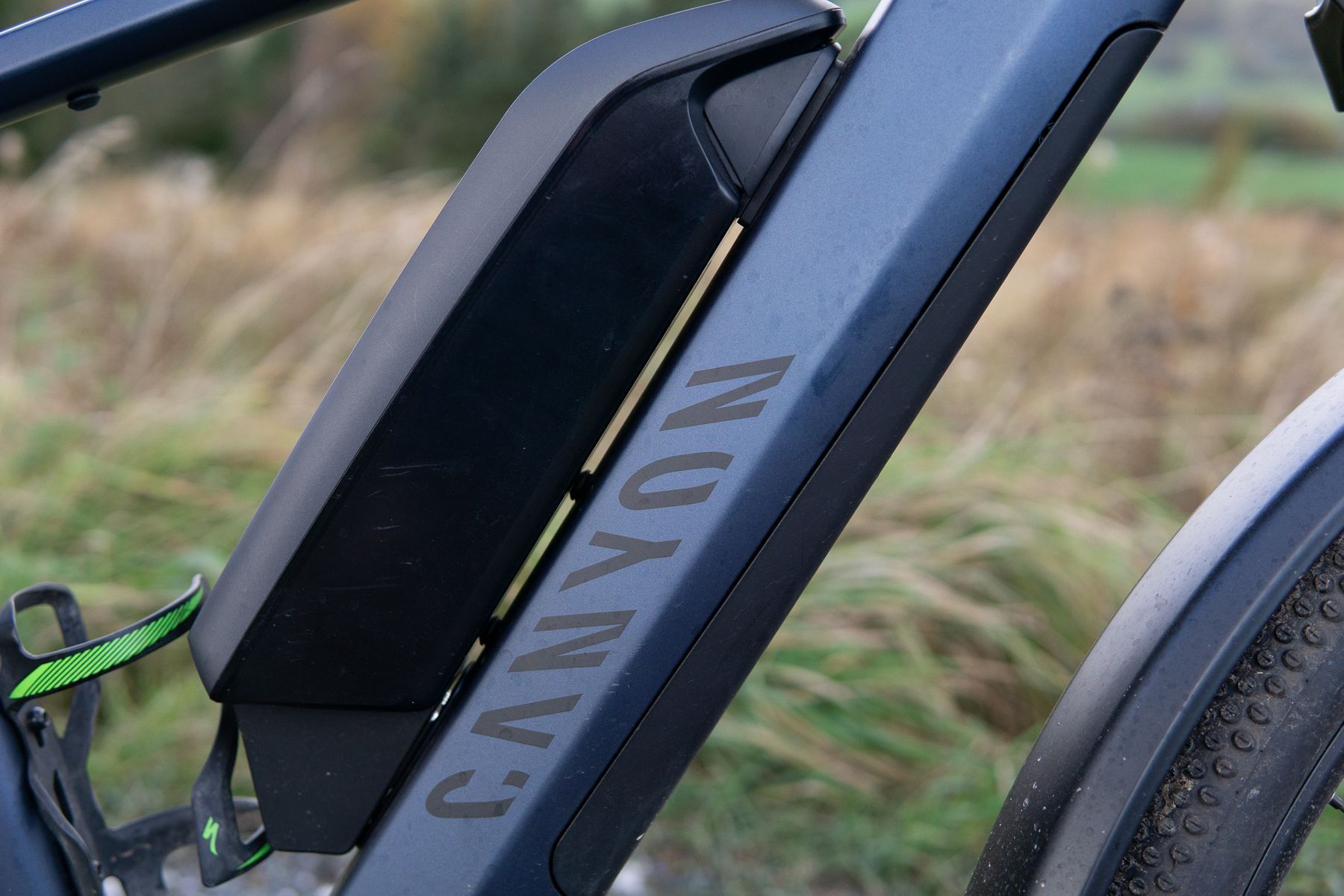 You can also remove the upper battery to save some weight, or even to bail out a stranded friend with the same assist system. Detaching the battery reveals a third set of bottle cage mounts, but also exposes the electrical contacts, so really filthy rides without it fitted might be inadvisable. If you have both batteries fitted, the Bosch system draws on them simultaneously, which should help prolong their life.