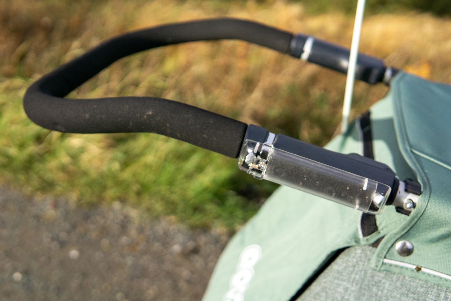 The Vaaya is rounded off with a few neat safety features, including front and rear reflectors and side lights that come on automatically when they sense it’s getting dark. The trailer also comes with everything you need to use it as a buggy. We tended to leave the push handle attached, partly due to the aforementioned lights, partly because it makes it easier to manoeuvre a laden trailer through the gates and barriers that afflict typical British cycling shitfrastructure. The other necessary element is a dinky wheel that clips into the underside of the trailer at the front edge. It even comes with its own little pouch in the trailer boot, which means you can sling it in there and keep it handy.