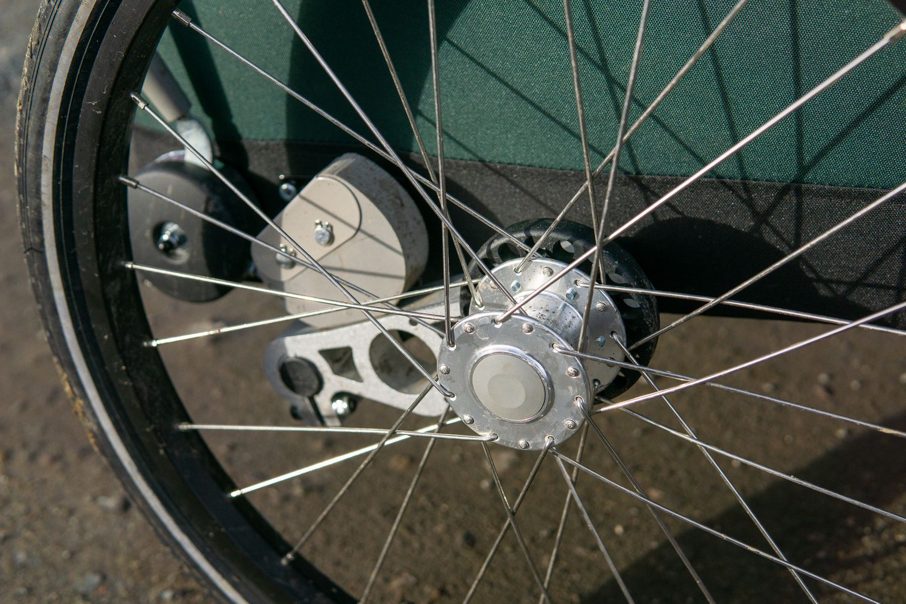 The trailer attaches via a sturdy alloy hitch arm at the axle of the tow bike, which requires either a universal QR mount or a specific thru-axle for your bike. There’s a safety strap and a nice positive click as it engages. It can be a bit reluctant to detach however. One feature of trailers designed in Europe is that they tend to be offset to the left hand side – not by much, but it’s something to bear in mind if you don’t want to lose a wheel off the edge of the trail or road.