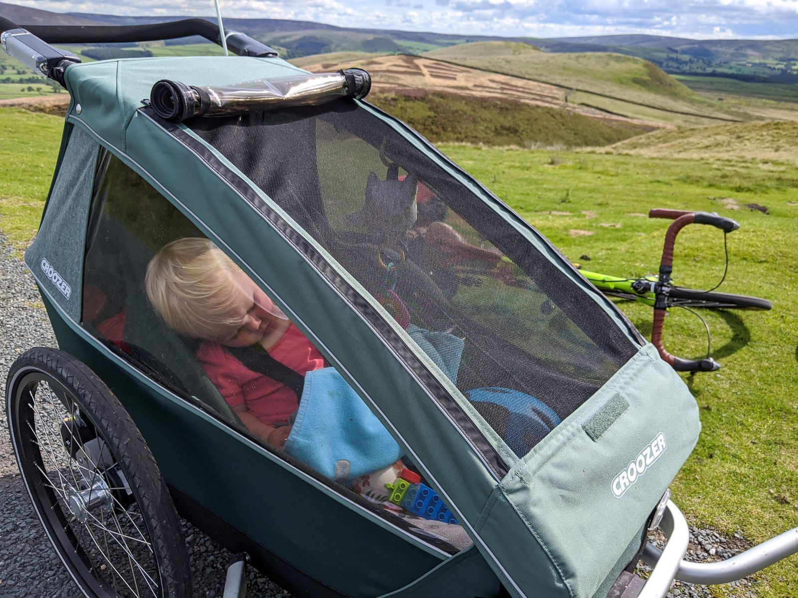 In use, the Croozer Vaaya is as nice as any trailer I’ve towed. The low centre of gravity keeps things super stable and the suspension seems to take the sting out of the trail. Our daughter has spent multiple consecutive days in it, and only started to grumble on the third day, after it was used as part of an enforced separation process with some particularly interesting ducks. I did worry that the padding was a bit thin, but it passed the “Will she fall asleep in the trailer?” test with flying colours.