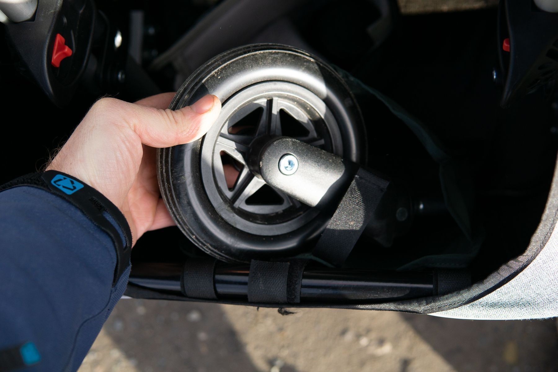Weather has stayed out, even on some truly filthy rides, although the bottom of the bags in the boot got a bit damp and muddy, as they sit on top of a large mesh vent. It’s better used as a trailer rather than a buggy – I found the handle a bit too narrow and the front wheel prone to jamming sideways – but it’s OK for occasional use.