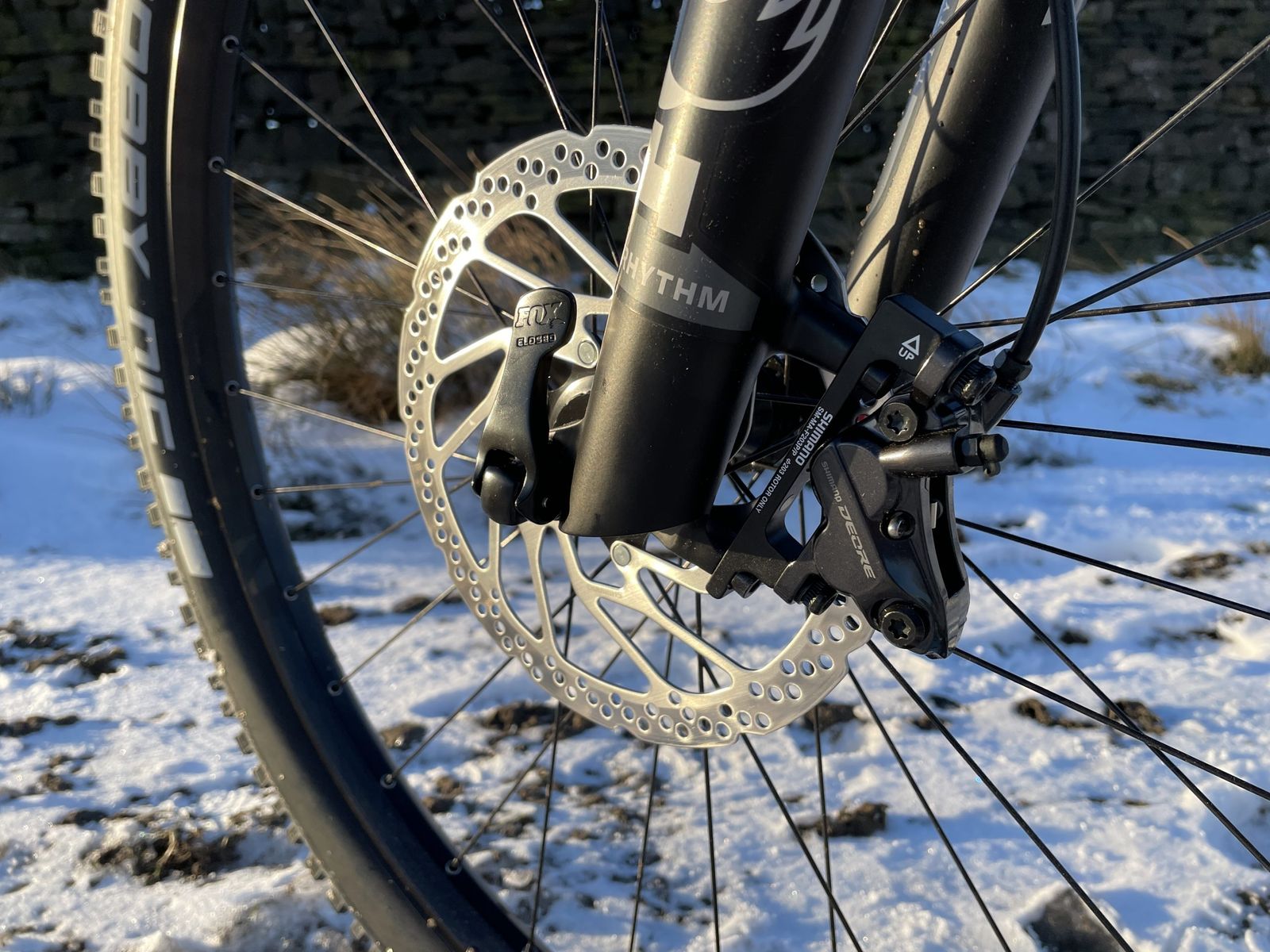 Brakes are Shimano Deore, with a four-pot version on the front and two-pot version rear. Both ends get 203mm rotors, but the rear is an eBike specific EM300 Steps one.