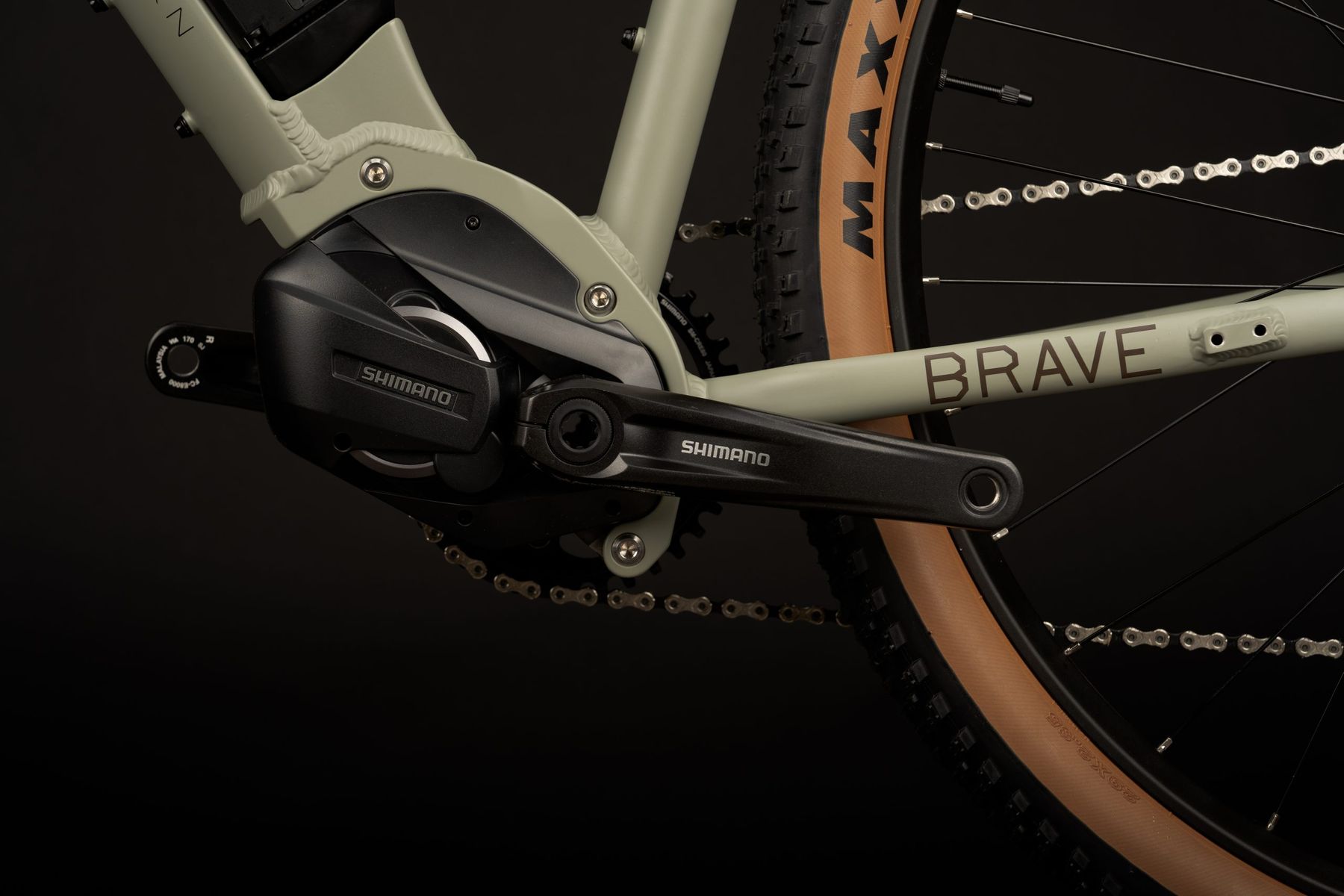 “After extensive testing of several E-Bike systems, we found that some systems can abruptly propel the rider into obstacles on the trail, which can be unpredictable and even dangerous on a rigid bike, especially while loaded with gear. With this in mind, we have equipped the BRAVe with the extremely subtle and controllable Shimano Steps E7000 system. With 60nm of torque, the system balances power, range, and weight, which helps keep the rider upright and in control regardless of the terrain.