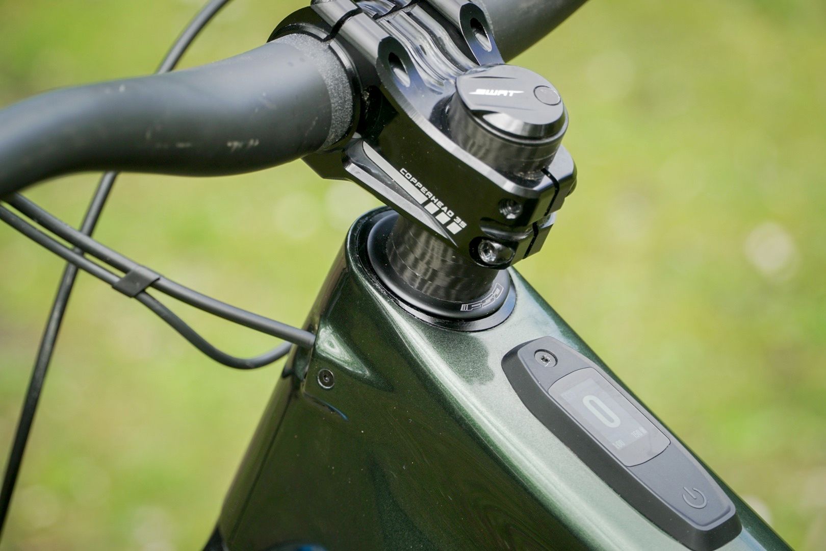Looking at the Kenevo SL alongside an eMTB from just a few years ago shows us just how far we have come in terms of design and integration. This is one truly stealthy eMTB and if it wasn’t for the built-in display most people probably wouldn’t realise what it is. Speaking of which, the display or Turbo Control Unit (TCU), is the brains of the bike giving the rider plenty of important information at a glance while also giving the Kenevo the ability to pair with your smartphone, or even heart rate monitor. I’m not sure what the resolution of the display is, but the information is beautifully crisp, bright and clear, and best of all the battery consumption is displayed as a percentage rather than non-descript bars.