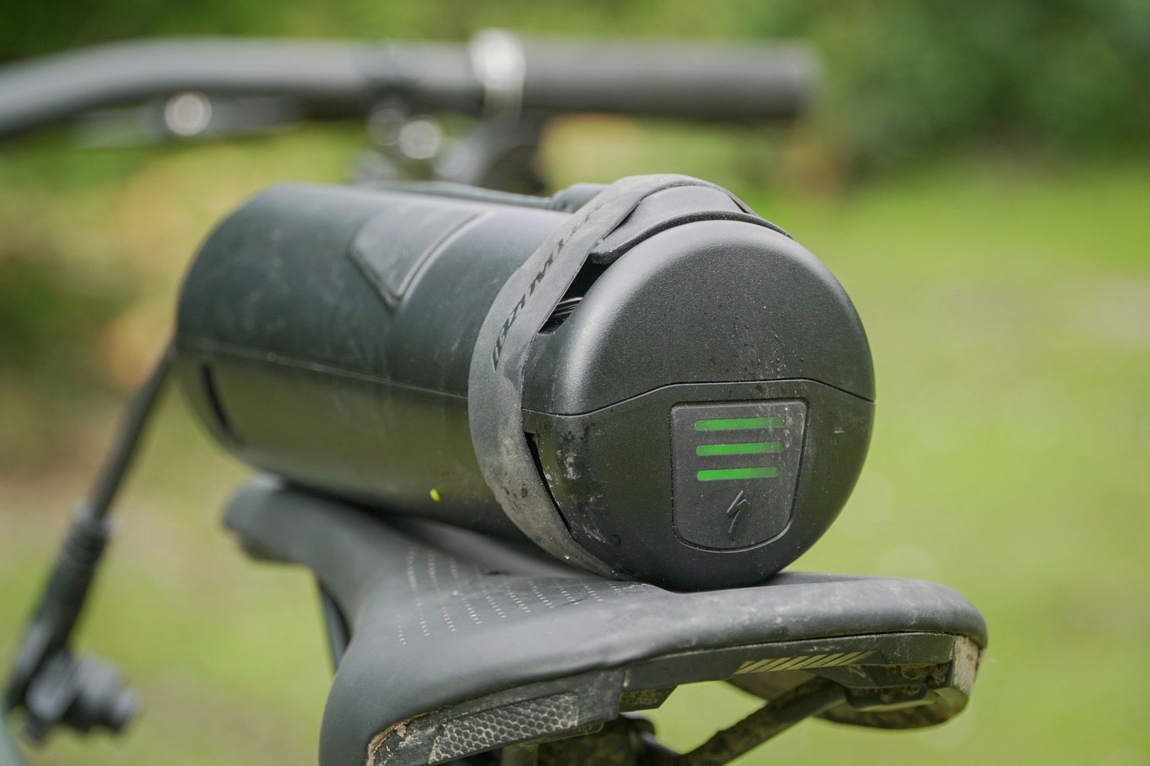 You don’t need to worry about the tether disconnecting by mistake as there is a tab to lock it in place, and Specialized provides a ‘Y’ charging connector so that you can charge both batteries at once should you need to. I’ve not played around too much with the additional battery yet as our test bike only arrived last week, but it’s small enough to carry in a pretty small pack and from the Mission Control app you’re able to set how the two batteries work together i.e synchronised discharging or drain one before the other.