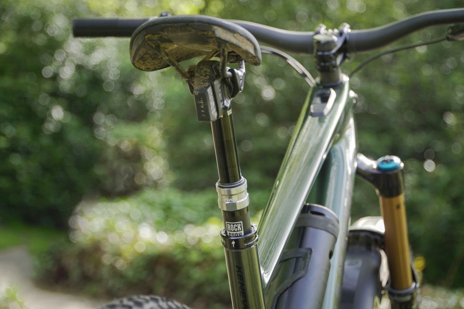 As such the Kenevo’s geo isn’t labelled with your standard small, medium, large, etc but from S2 – S5 covering reach numbers from 437mm-512mm (depending on the head angle and BB drop). Our test bike is an S4 with a 489mm reach, and a seat tube length of 440mm. Oddly, at least for my taste, the stem on the S4 is a 50mm model something I’ll likely end up swapping for a 35mm option for a more direct feel with the front wheel. At 178cm the reach and seat tube numbers are similar to most other modern bikes, but it’s worth noting that the 175mm AXS dropper on our S Works build cannot be fully slammed into the frame. This effectively adds another 60mm to the overall height (due to the long collar on AXS posts) meaning that with the saddle fully extended I’m on the very limit of comfort.