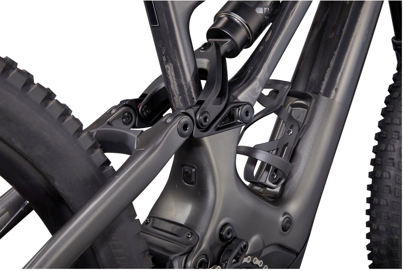 This Expert build has a FACT 11m full carbon frameset, adjustable head angle and an adjustable horst pivot. That horst link suspension is controlled by a Fox Float X2 Performance Elite rear shock. A Fox Float 38 Performance Elite with Grip 2 damper is in charge of the front wheel damping. As we saw with the Kenevo SL, a SWAT tool is stowed away in the steerer tube of the 38, while also hidden internally is a 700Wh battery, though in the carbon downtube.