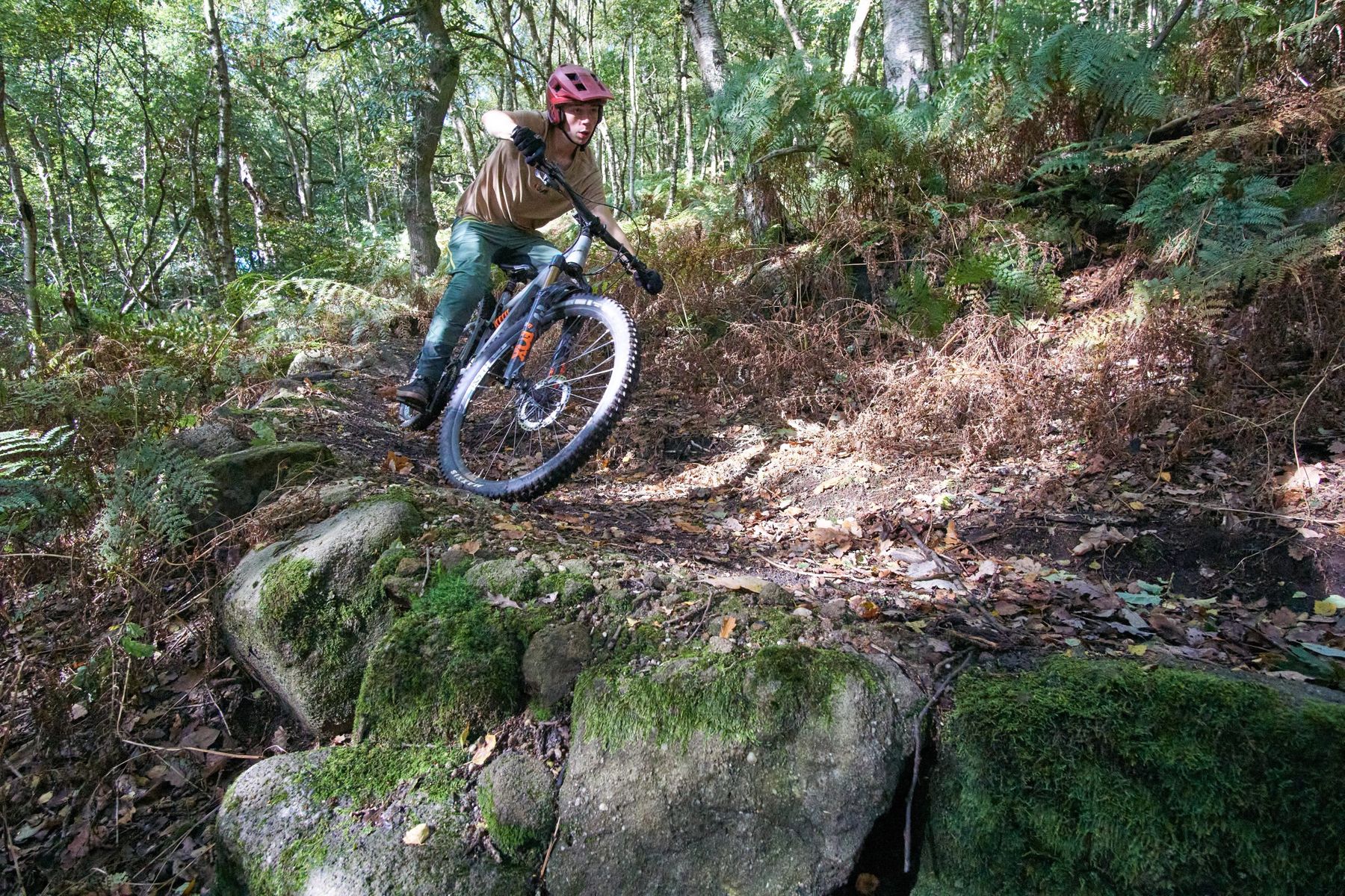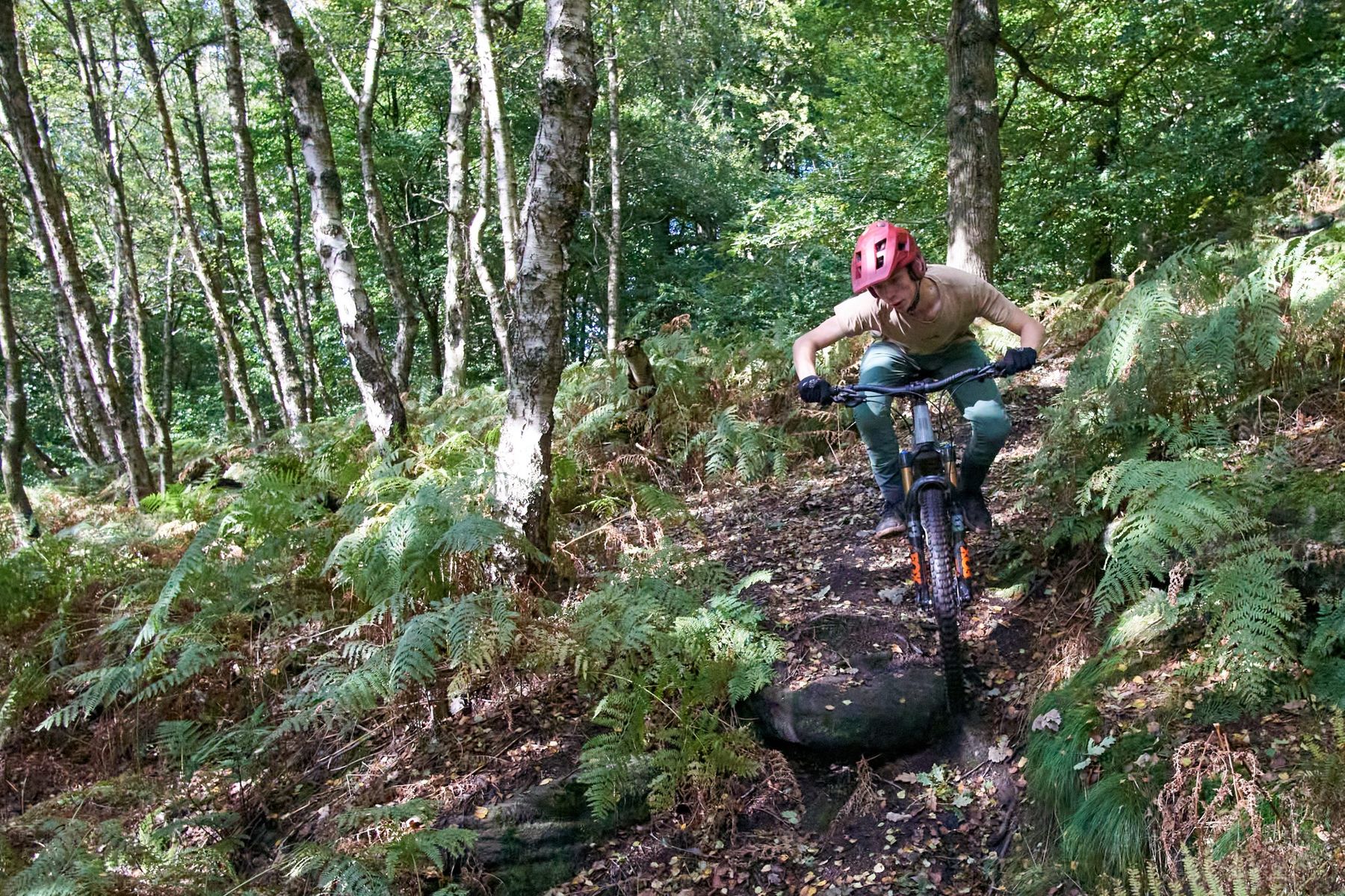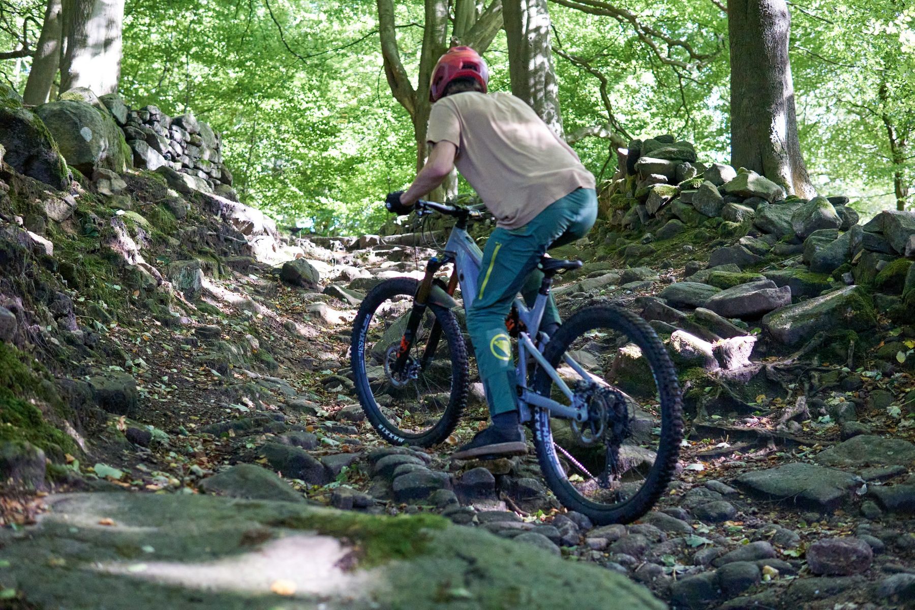 Climbing on the Ariel 50E is surprisingly easy given the bike’s obvious proclivity for downhill. The rear shock gives great traction without any of the wallowy feel of old skool coil suspension, and the steep seat angle puts you in a nice neutral body position. For more dynamic climbs, a shorter frame would suit me better, but even on those you can use brute force rather than finesse to get up without a dab.