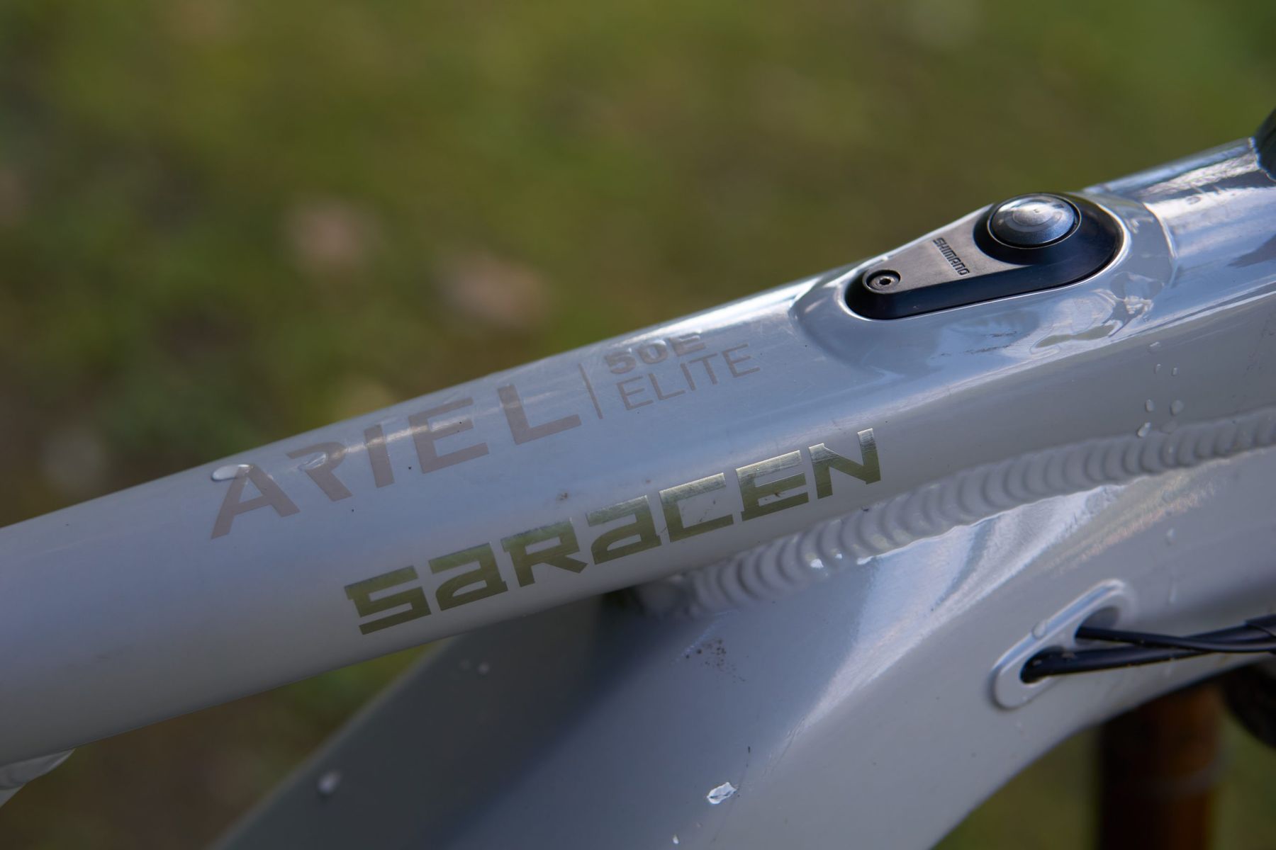 The Ariel 50E Elite starts with a neat alloy frame sporting some nice clean lines. The primer grey colour won’t prompt any excited fondling of your bike in the car park, but nor will it clash with your riding kit. Cable routing is mostly internal apart from a fairly long exposed section of rear brake hose. The controller and display wiring is external, making cockpit swaps easy. There’s a rubber chainstay protector but Saracen have otherwise been tastefully restrained in the frame armour department.