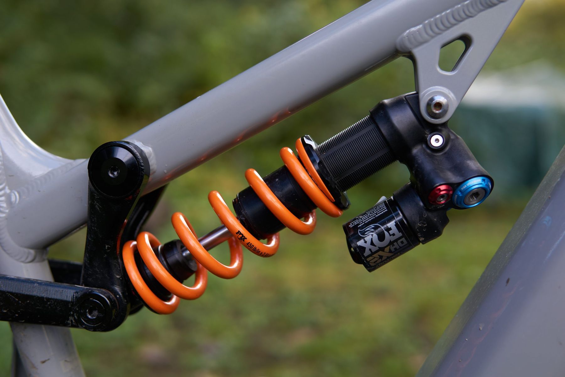 The suspension is from Fox’s Factory range and pairs a 160mm Fox 38-E Factory fork with a Fox DHX2 Factory rear shock to produce 150mm. The large Ariel 50E comes with a 450lb shock spring, which was fine for me at my bodyweight of 175lbs or so. The new Fox Factory range has standardised adjustments so that your fork and shock have the same number of clicks for rebound and compression damping – good news for anyone who’s afraid of fiddling with their suspension. This version of the DHX2 shock also has a climb switch, although I’ll be honest and say I didn’t actually realise this until the test period was over.