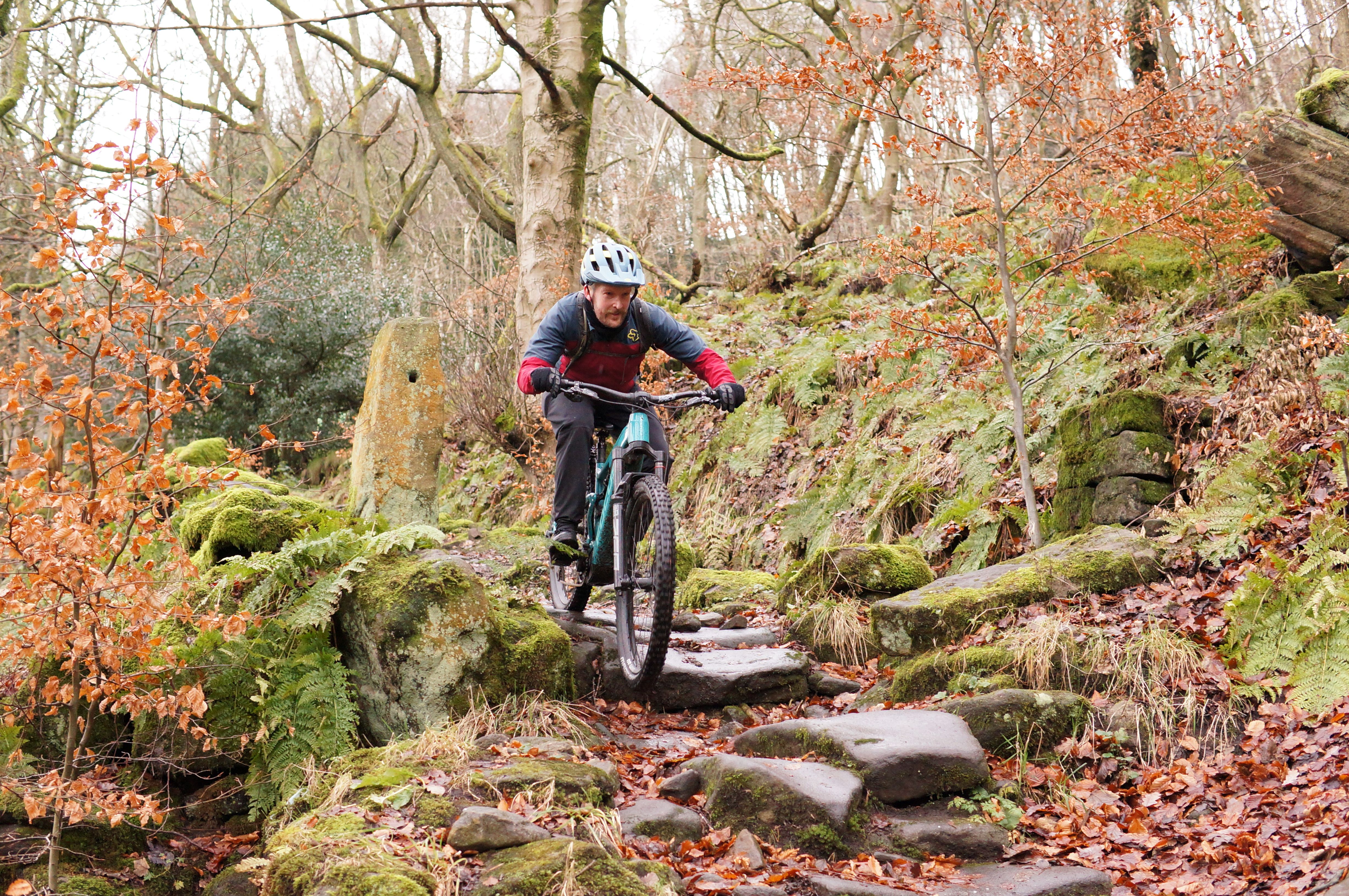 The suspension design is also at the responsive end of the spectrum. The suspension doesn’t just eat up the bumps, it gives a decent amount of feedback. It responds well to my attempts to preload and pop over stuff. It feels slightly less comfortable with really big hits (some experimentation with volume spacers is no doubt required) but for general trail riding it makes the bike a much more fun proposition than some ebikes I’ve ridden. When climbing it’s very active indeed and this seems to translate into traction and forward motion, rather than excessive bobbing around like a cork in a pond.