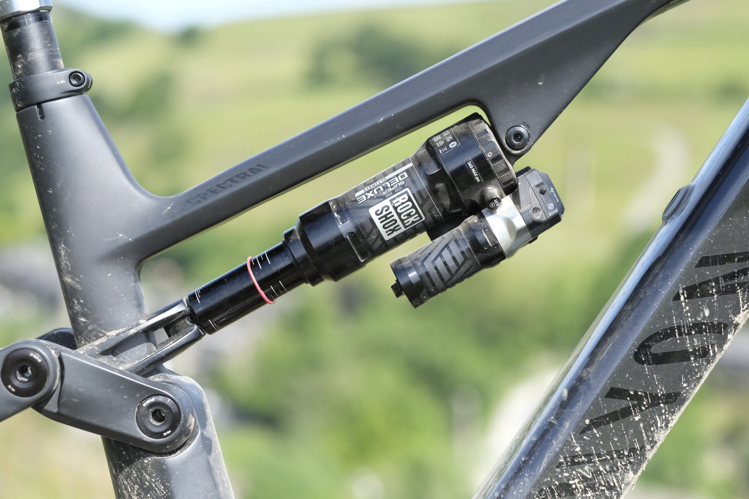 The Canyon Spectral:ON CFR LTD is the top of the model range: RockShox Ultimate Flight Attendant system controls a 150mm travel Lyrik and a SuperDeluxe rear shock delivering 155mm of travel.