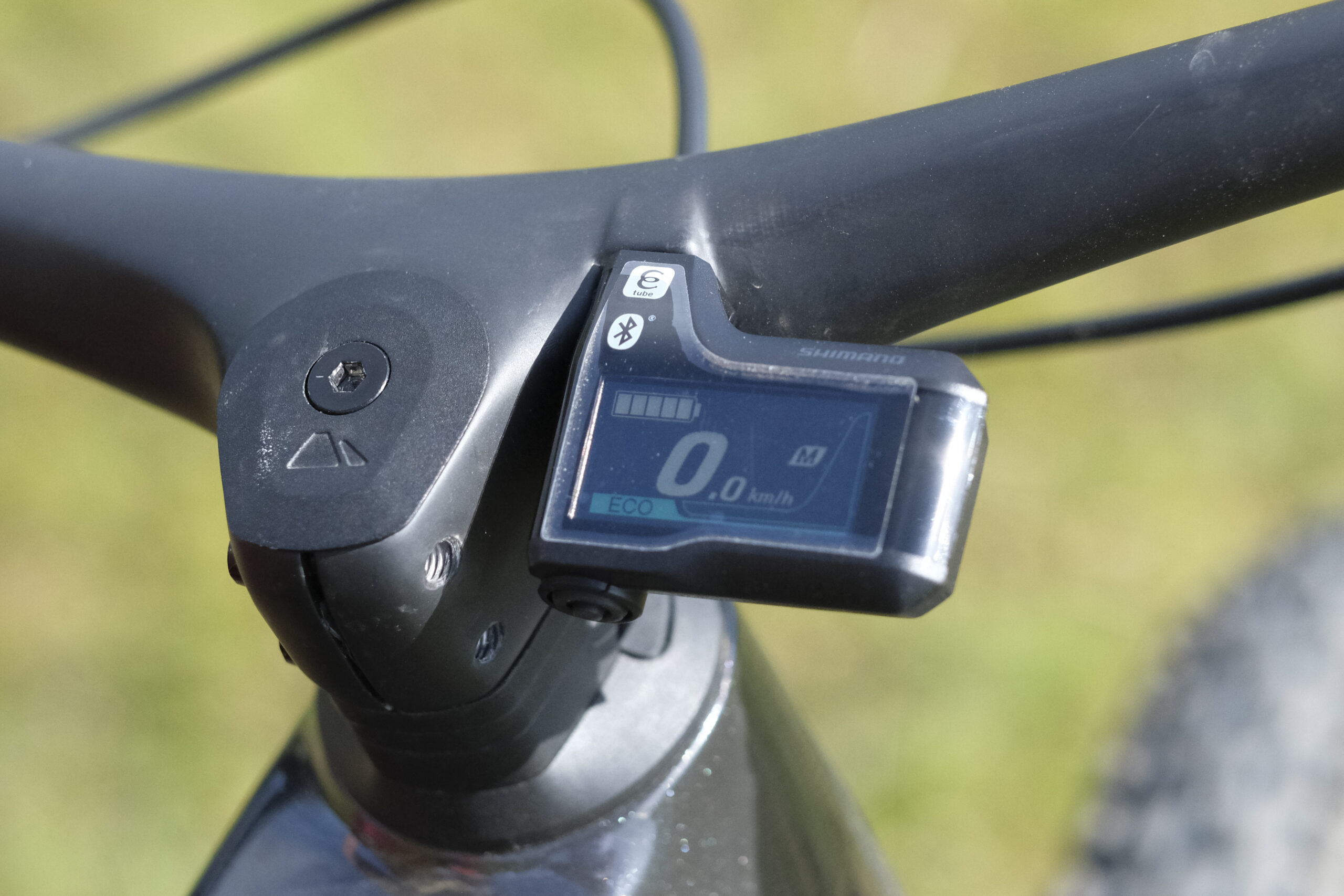 It’s a closed system with the cockpit too. The integrated bar and stem with wiring running through it mean that should you wish to swap your bar it’s quite a job, and you’ll need to invest in a mount for the Shimano Steps display. You’ll also need to watch your light mounts if you’re going night riding – the tapered and angled space on the bars won’t play well with some clamps.