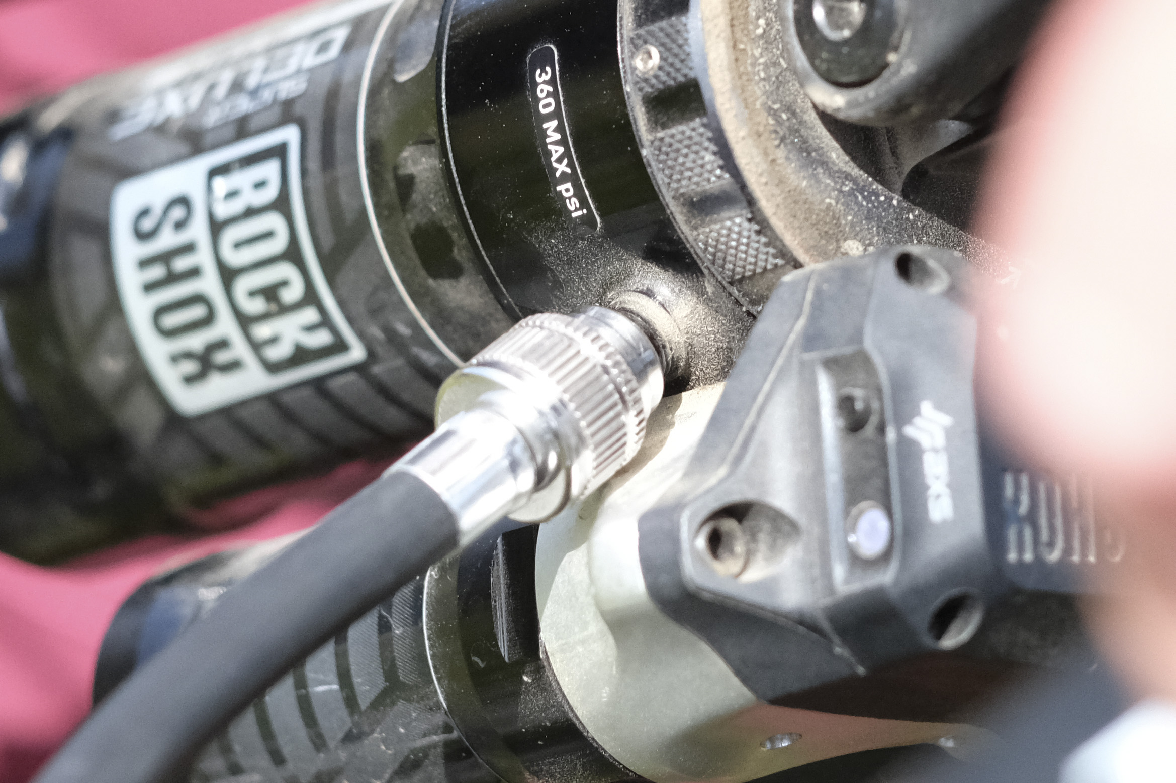 You’ll also want a nice slim-ended shock pump, as the more bulbous ones (including the one provided with the bike) almost foul the Flight Attendant element of the shock, making it difficult (but not impossible) to get your pump on and off without letting out a load of air.