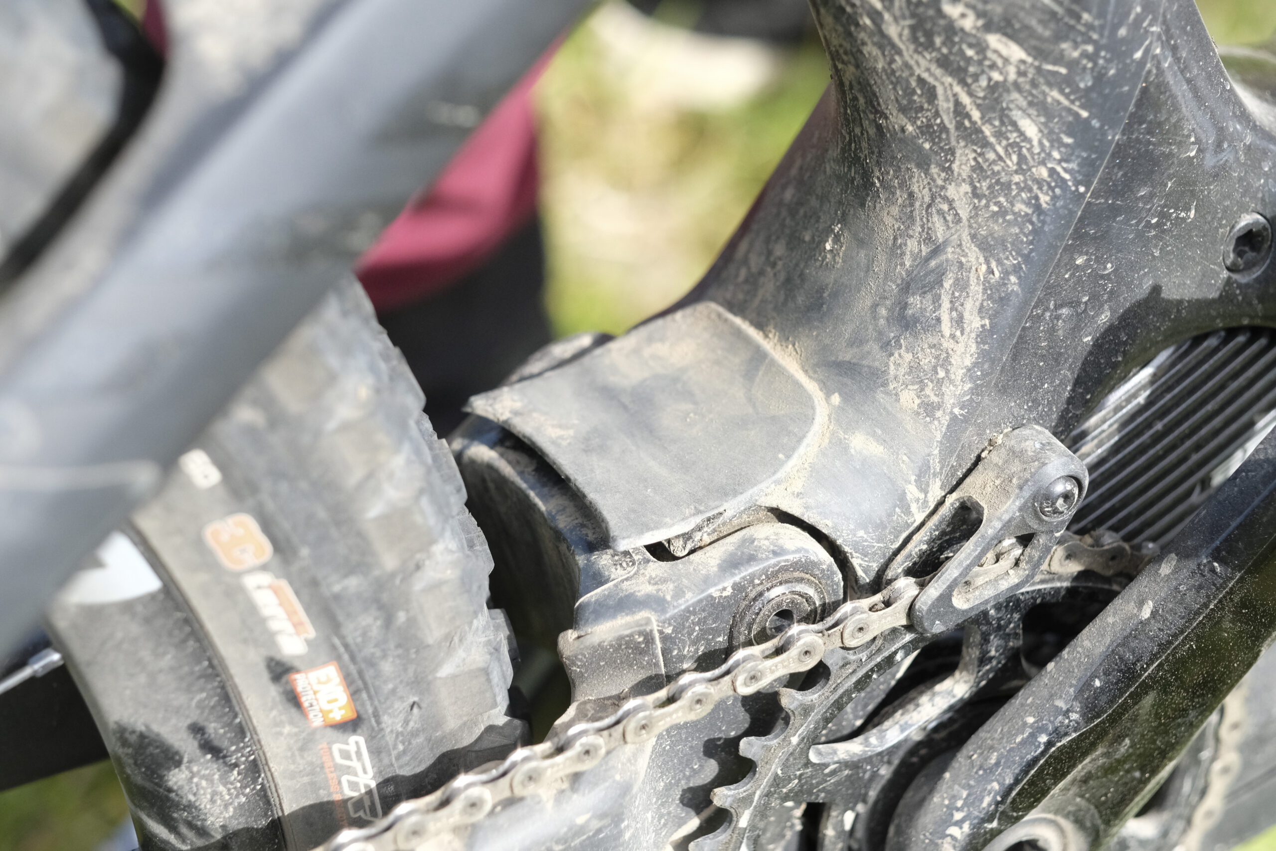 There’s a little rubber mud flap to keep the worst of the muck out of your linkage. This seemed to work pretty well, but depending on the kind of mud/soils you’re dealing with you may find it makes getting in there to clean properly a bit tricky. I’d keep an eye on this area if it were my bike, and check that things weren’t building up or grinding over time, under cover of the flap.