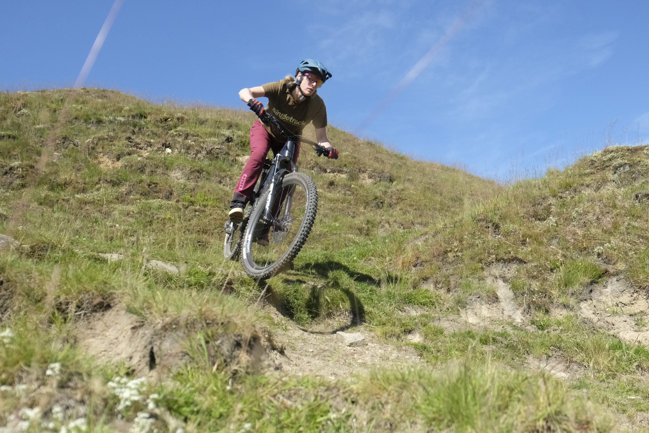 The ride position is balanced and the traction is great – you just sit and spin your way up and over everything. Maybe pull your chin a bit closer to the bars on the odd obstacle. But otherwise, you just keep pedalling, and it keeps going.