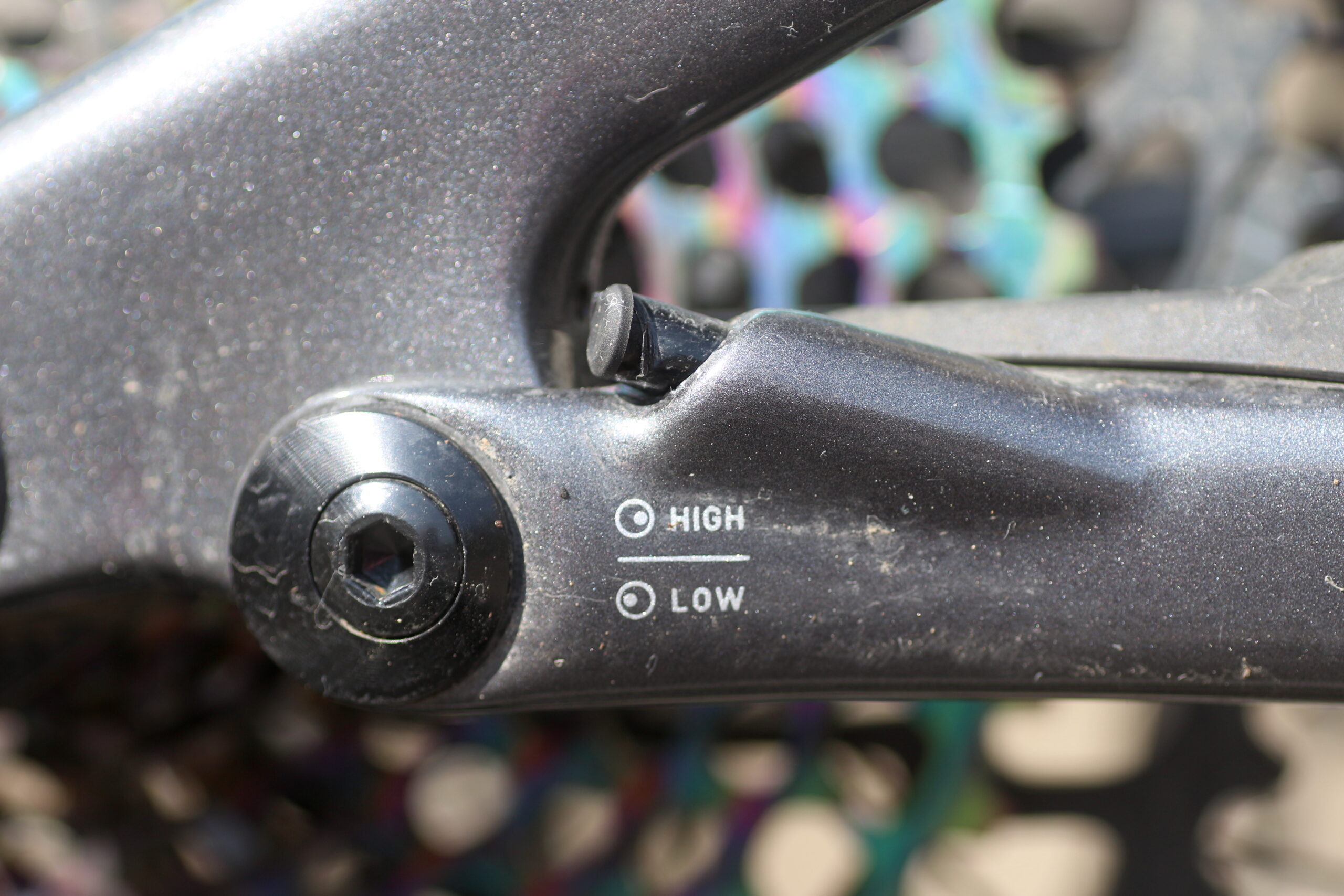 Beyond the tech there are new geometry options – six in fact. The adjustable headset gives three positions and when coupled with the flip chip at the rear offers a total of six geometry options with head tube angles from 63.5–65.5°. Of course, I immediately went for the slackest option.