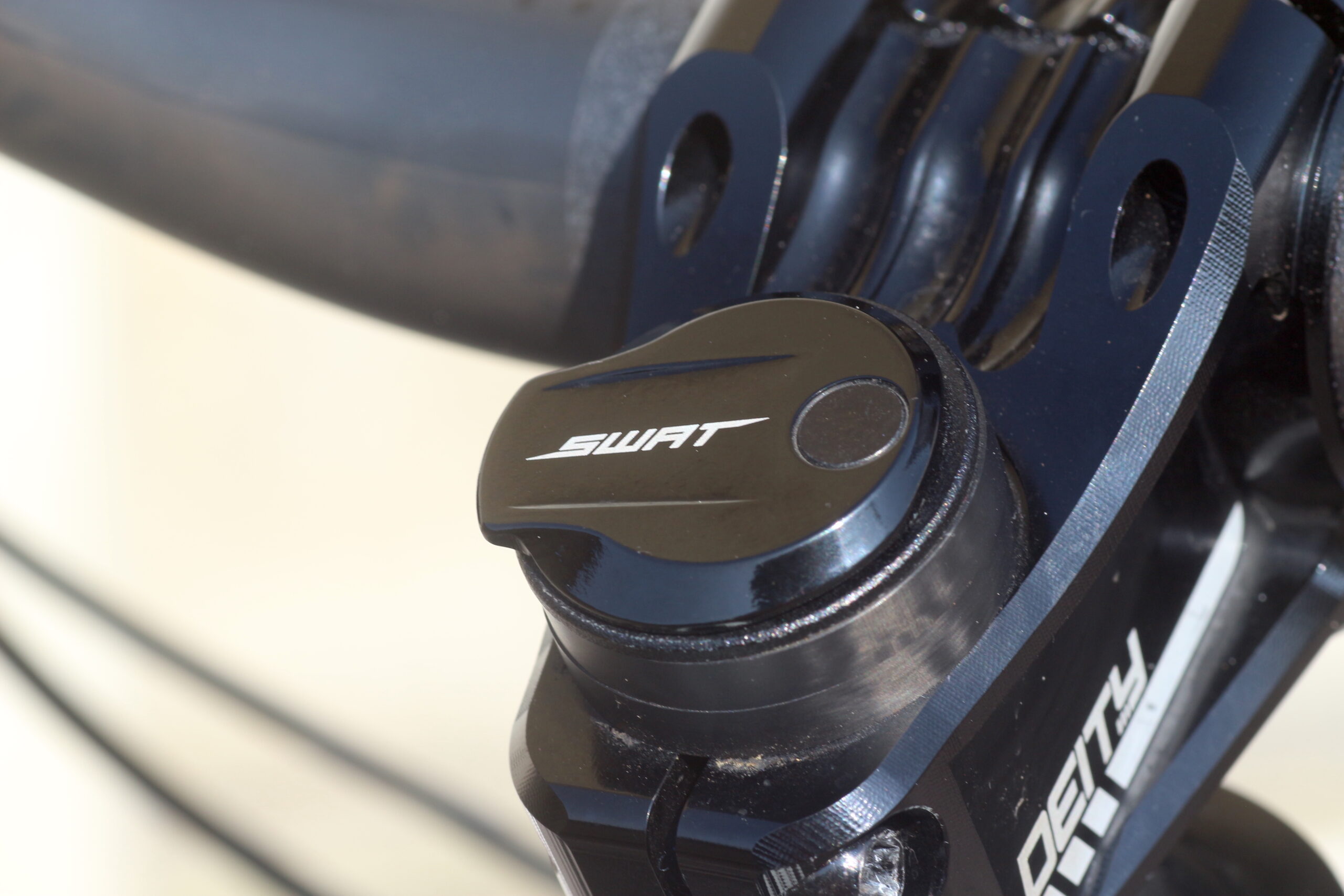 So how ‘full-fat’ is this model? The battery is a whopper at 700Wh capacity, which suddenly makes that 22kg figure look a bit more impressive. It’s contained in the downtube, of course, which does mean the handy SWAT box storage of the Stumpjumper is not an option here. But no matter, there’s still the really handy hidden tool located in the steerer tube, which I can’t praise enough as it’s always on hand and ready to use.