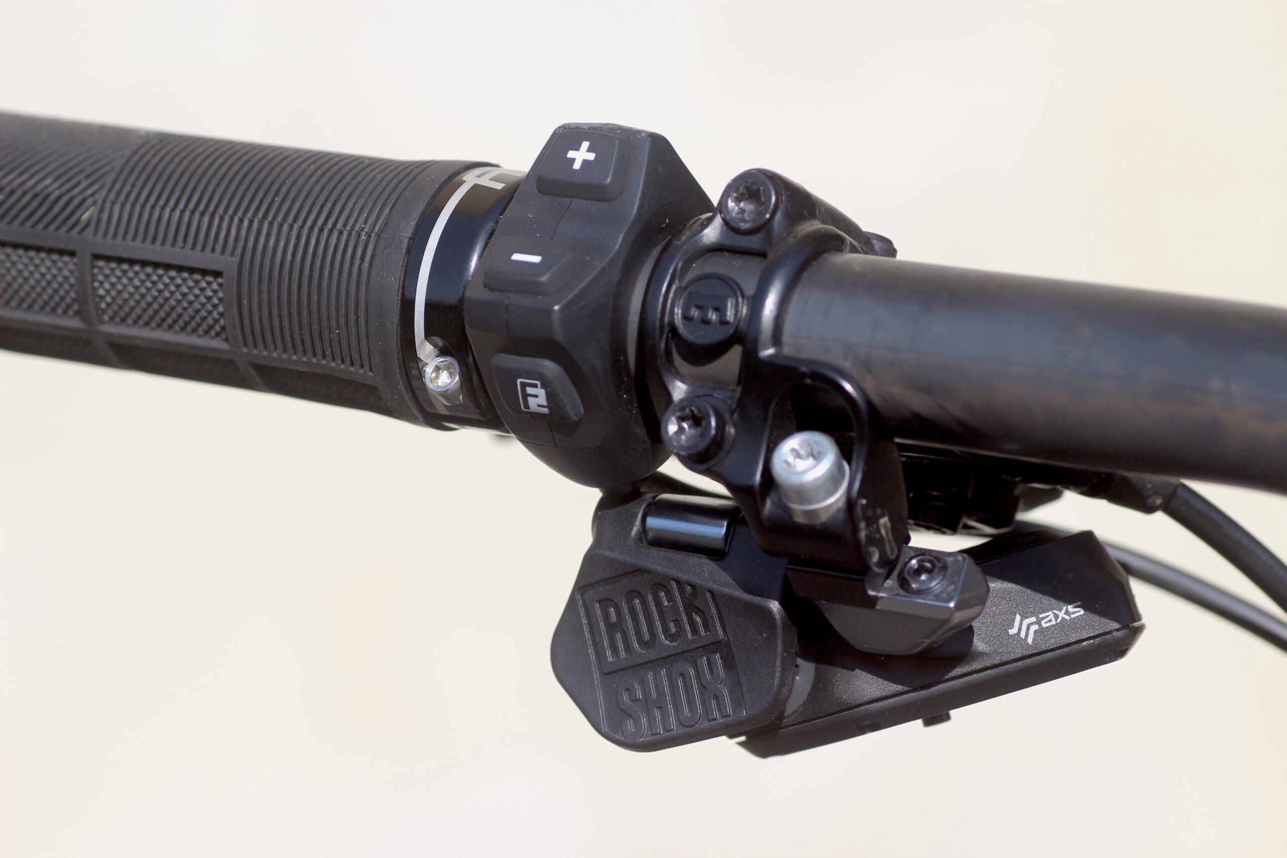 The SRAM AXS shifting is sublime, as it should be. The lack of cables, the low profile and very understated power controller create a very clean looking cockpit. Shifting by button clicks rather than a lever throw that pulls a cable takes a bit of getting used to and I did spend quite some time getting the shifter paddles in just the right position. Similarly the dropper actuator paddle is just an electronic switch, activated by the lightest of touches. In fact the rather aggressive return action of the post coupled with the minimal required touch of the ‘lever’ can catch you out from time to time… If you know what I mean.