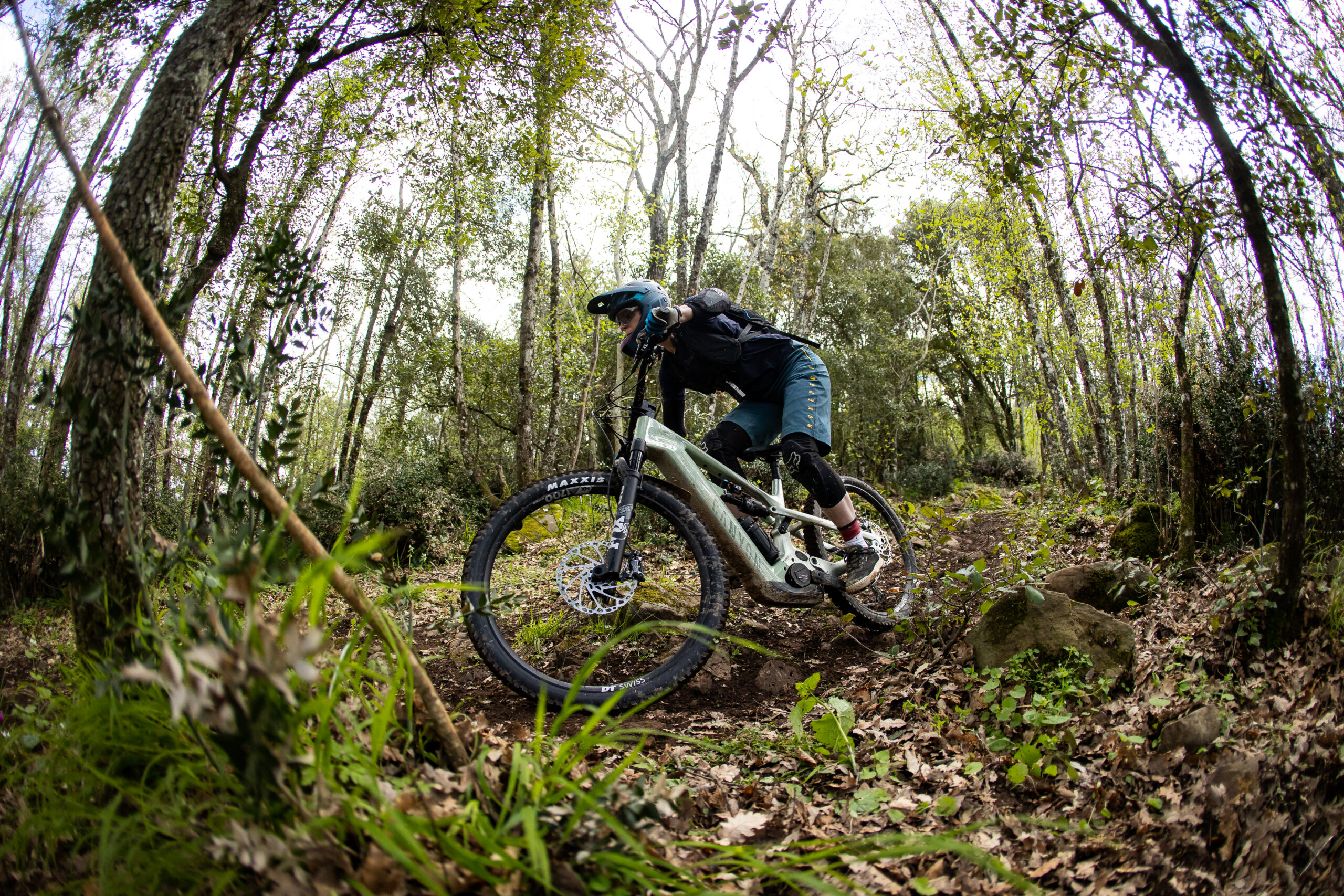 Never before have I found myself panting quite so much on an ebike. Heartrate up, chasing up hill, through the woods, and back down. And down and down and down. Descents up to nearly 5km long, then back up for another lap, with barely a pause in between. Up fire roads, singletrack trails, contouring round (and back up, and down, and back up) off camber trails, then plummeting back down another long descent. Steep turns, snaking turns, drifting loamy turns… dropper up, dropper down, dropper up and catch your breath, dropper down, drop in, sprint. Fast straights, technical rock sections, gulleys, spiky rocks, grippy rocks… the world threw trail feature after trail feature at me as I tried to keep focussed a couple of features ahead. A high speed game of chess where taking a moment to think ‘this is fun’ would surely use up an important brain cell needed to pick the right line between here and there. Screw it up, take a chunky line, wriggle your way back to balance thanks to a whole pile of forgiving and agile bike, then back up to speed. Rock drop into sandy turn, hop off a root and over the rut, switch sides, take the left bank, then the right and then haul into a track stand as you choose which way to drop off the rocky island you suddenly find yourself teetering on. The Strive:ON had me feeling in control enough to push the limits of my abilities and tickle the edges of my comfort zone. After six weeks off the bike with injury, it was an incredible feeling to find myself dropping straight into blind race mode, brain checking off the features and shutting out the wider world.
